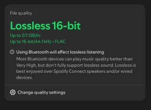 Problema la Spotify este că aplicația nu permite ieșirea directă la un echipament extern (DAC), iar semnalul trece prin mixerul sistemului de operare. Unii spun că pe Windows poate fi hit or miss, chiar și setat corect la 44.1 kHz, dar pe Android orice semnal e transformat în 48 kHz, apoi din nou în 44.1 la ieșire, deci e afectat, chiar dacă nu e un semnal comprimat. Deci momentan nu prea poți asculta lossless de pe Spotify din cauza aplicației. Cât contează asta când asculți? depinde de echipament și de urechi, dar e păcat să ai limitările astea dacă char vrei să achiziționezi echipament care să ți se potrivească pentru că depinzi de sistemele de operare.