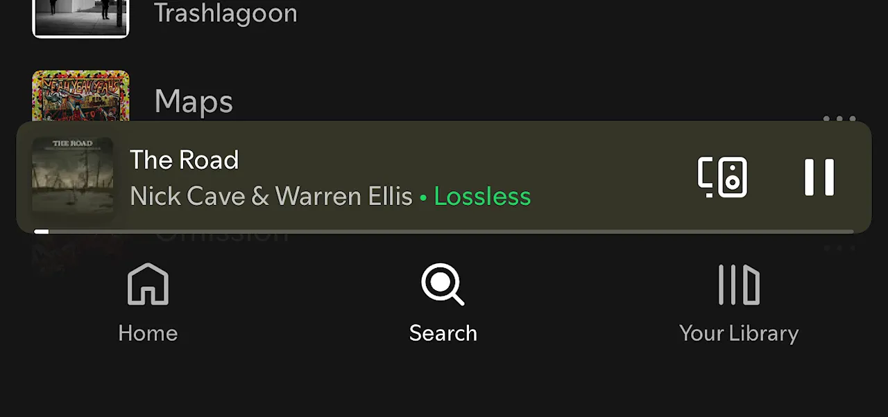 Cum știi că asculți în format lossless? Îți spune Spotify. Apare un Lossless scris cu verde în partea de jos.