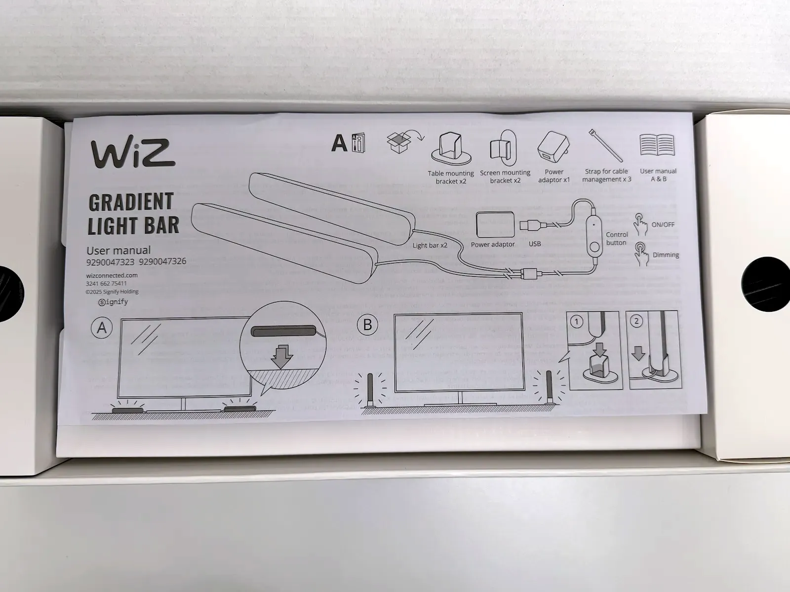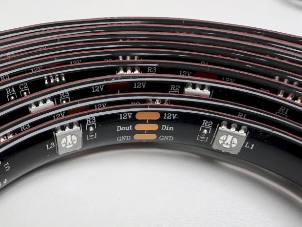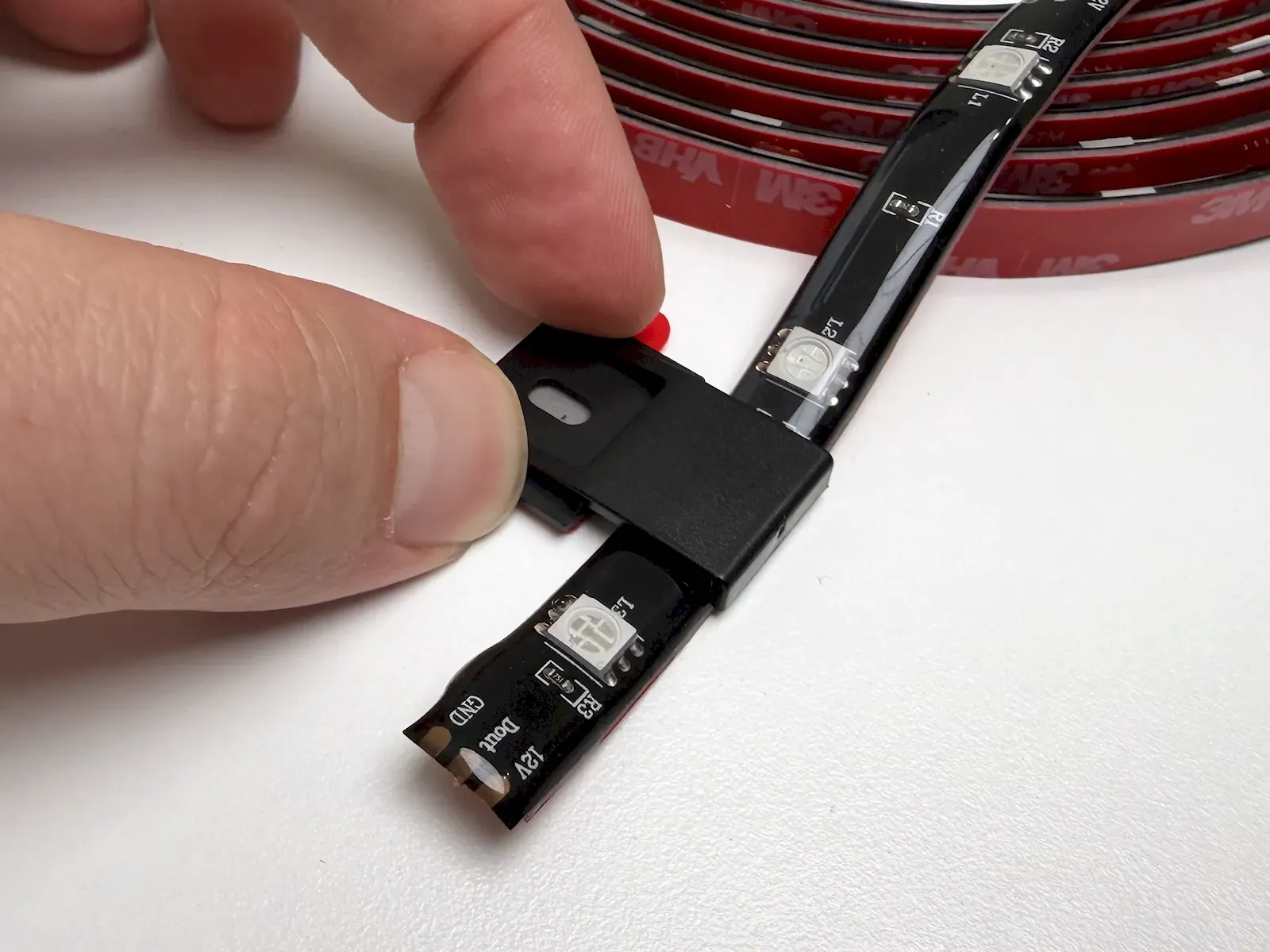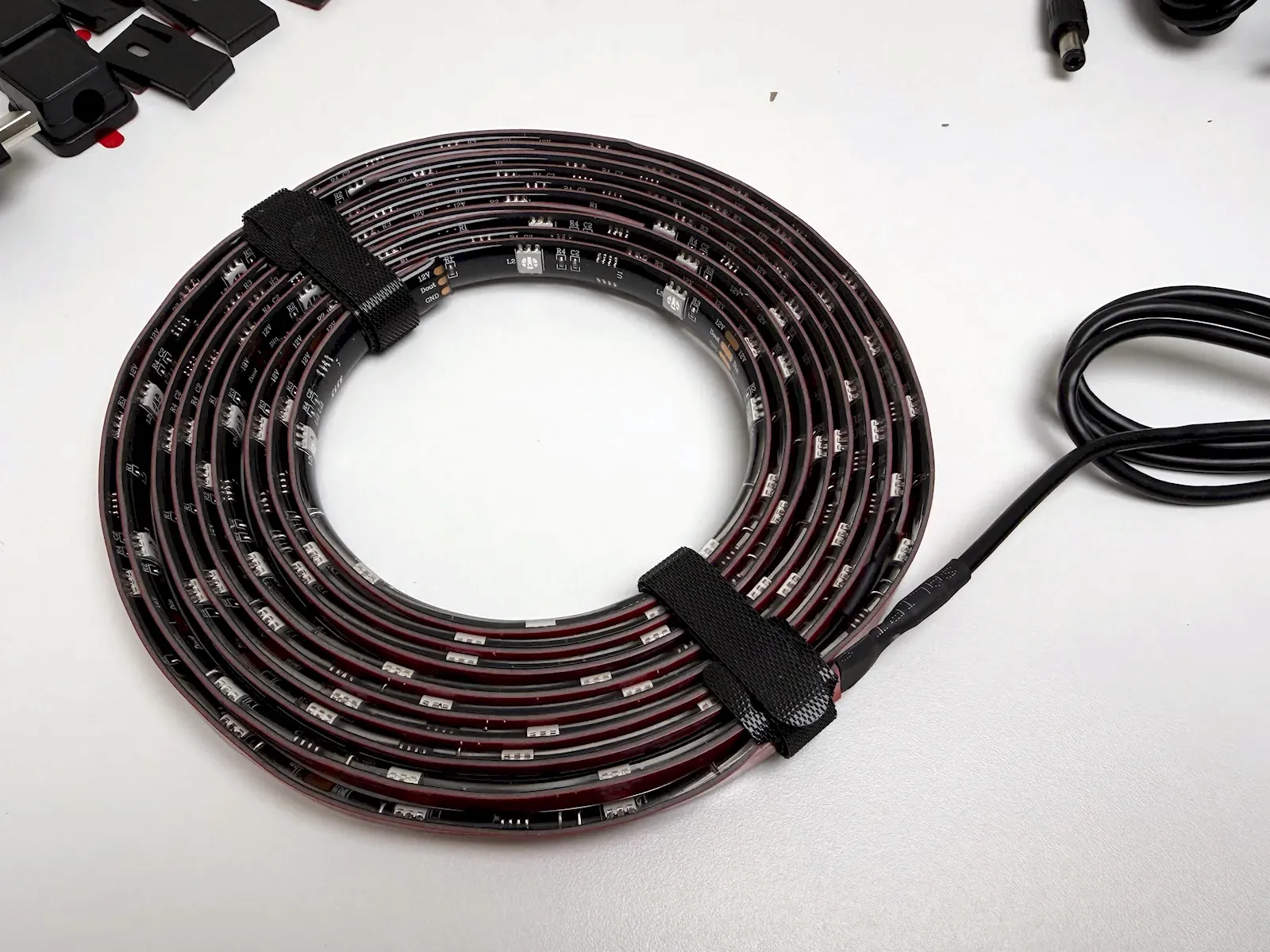 Banda LED în sine este multicoloră și este lungă pentru a fi montată pe trei laturi ale televizoarelor de 75-85 de inci. Poate fi tăiată, la nevoie, în anumite locuri gândite special pentru asta.