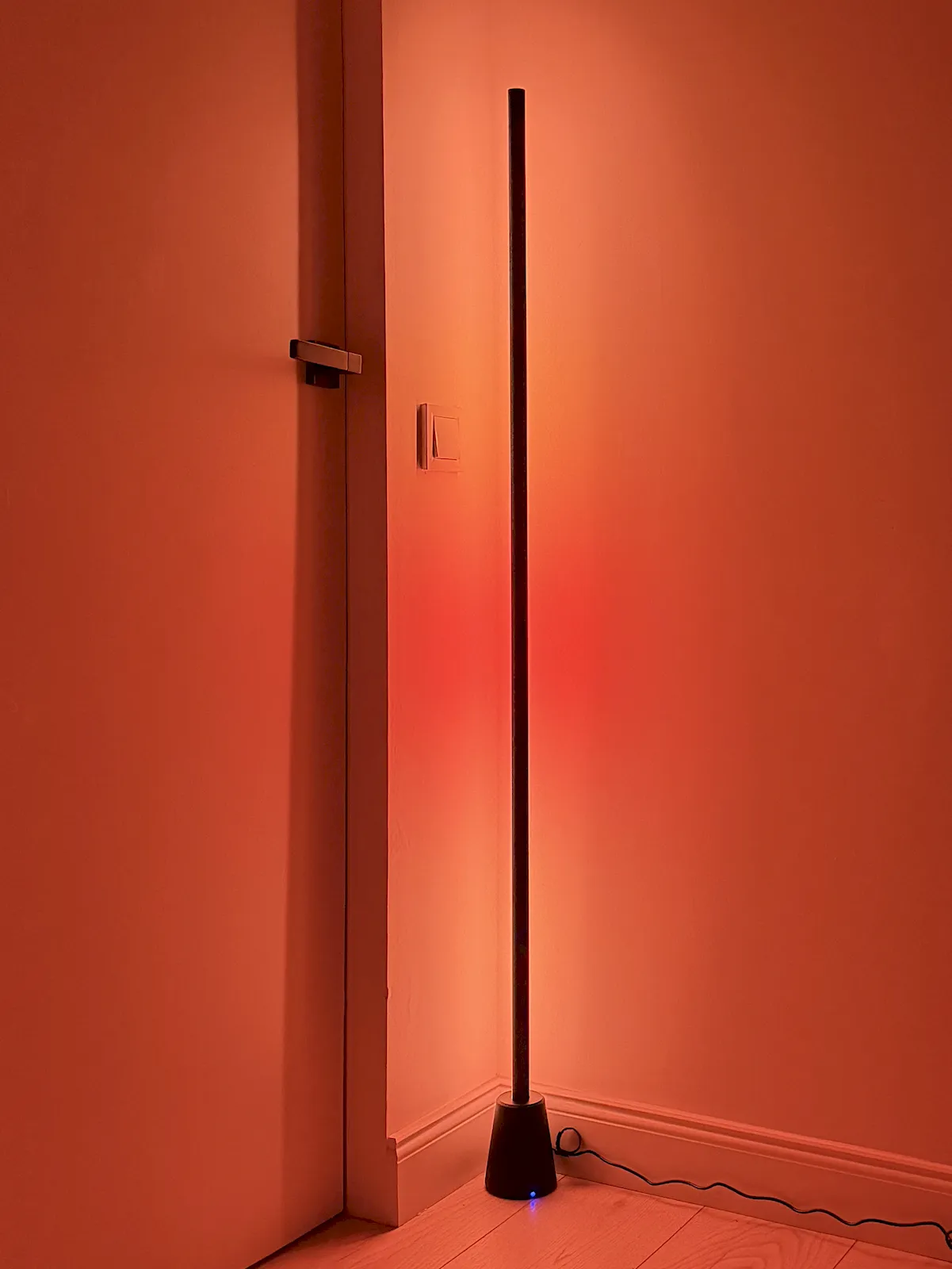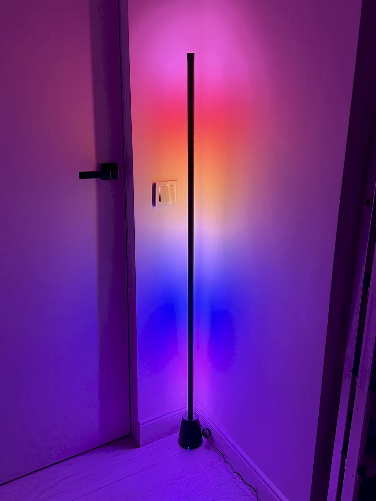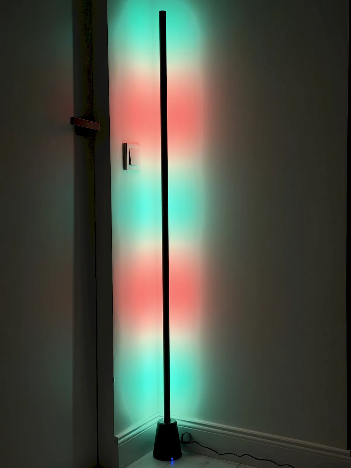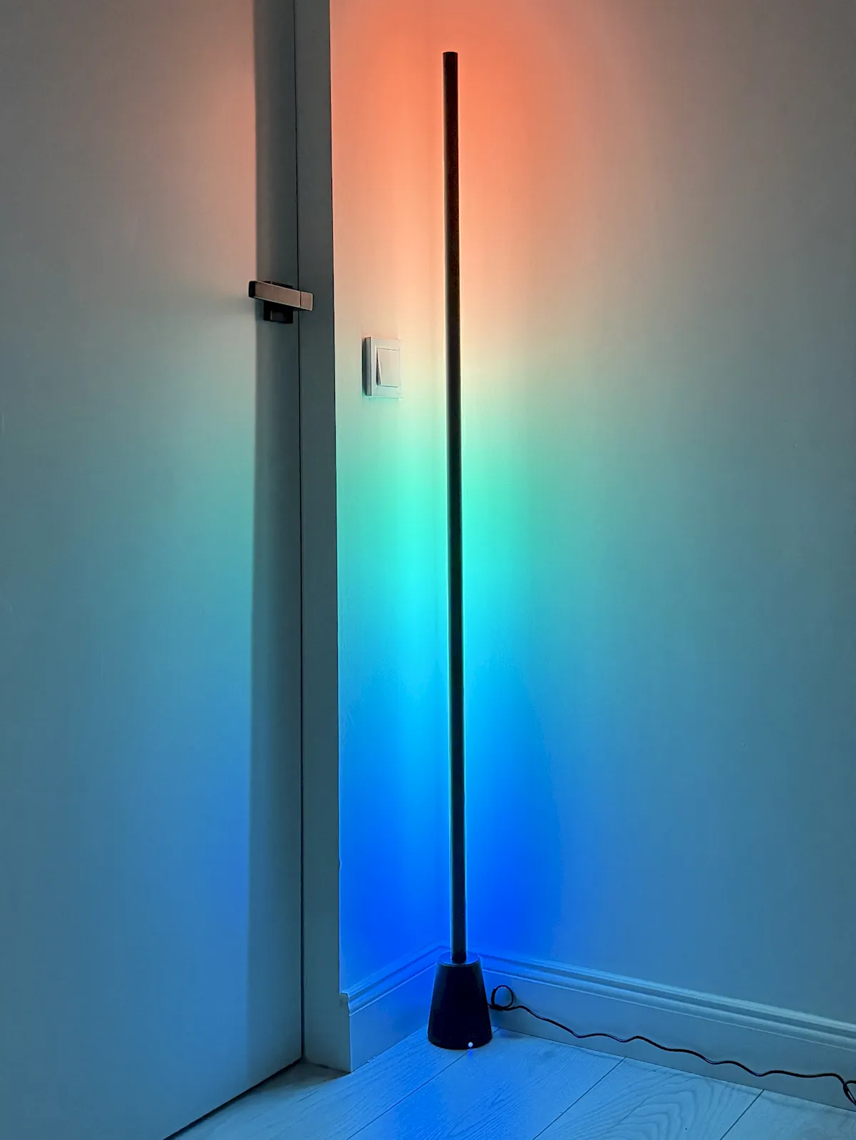 Gradient Floor sau “lampadar RGB de podea” este un tip de lampă, de veioză să zicem, care asigură iluminat ambiental colorat într-o cameră. Poate fi chiar o veioză, la nevoie, dacă-l aprinzi pe alb. Astfel de lămpi, însă, sunt de fapt gândite să fie plasate cu banda LED către perete sau către un colț de cameră pentru a arunca lumina colorată pe perete, nu spre ochii persoanelor din cameră.