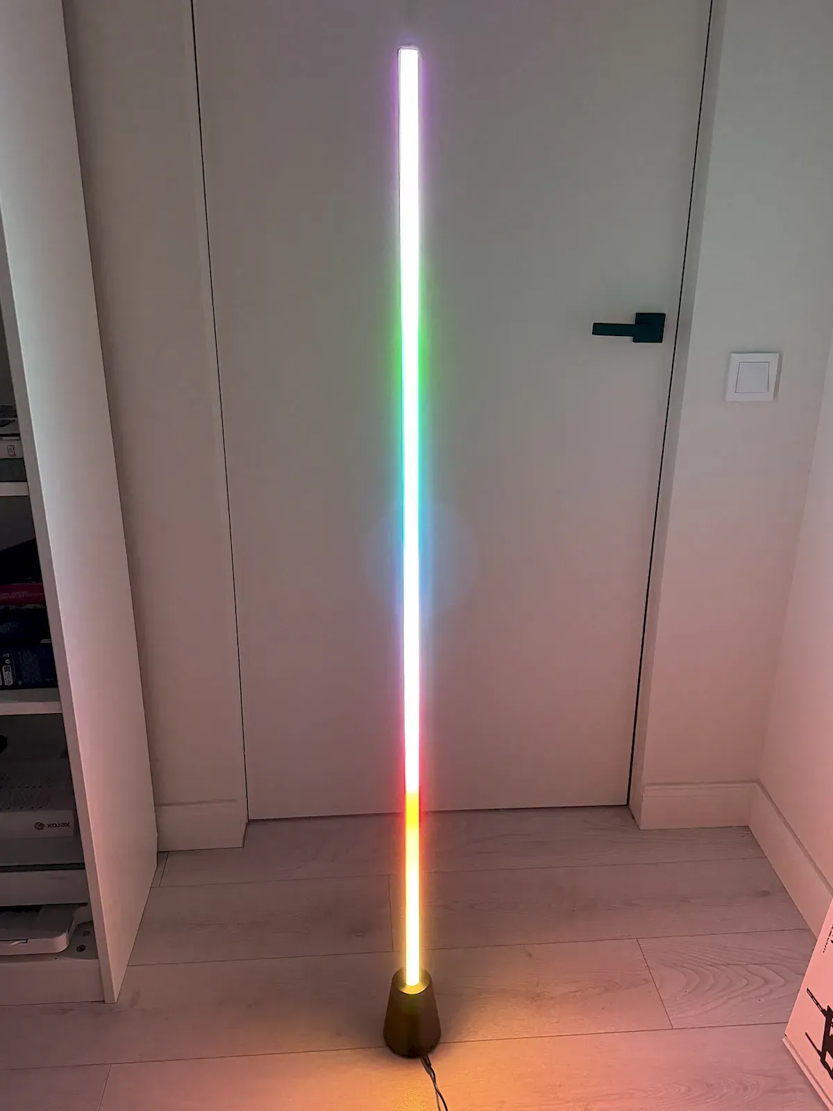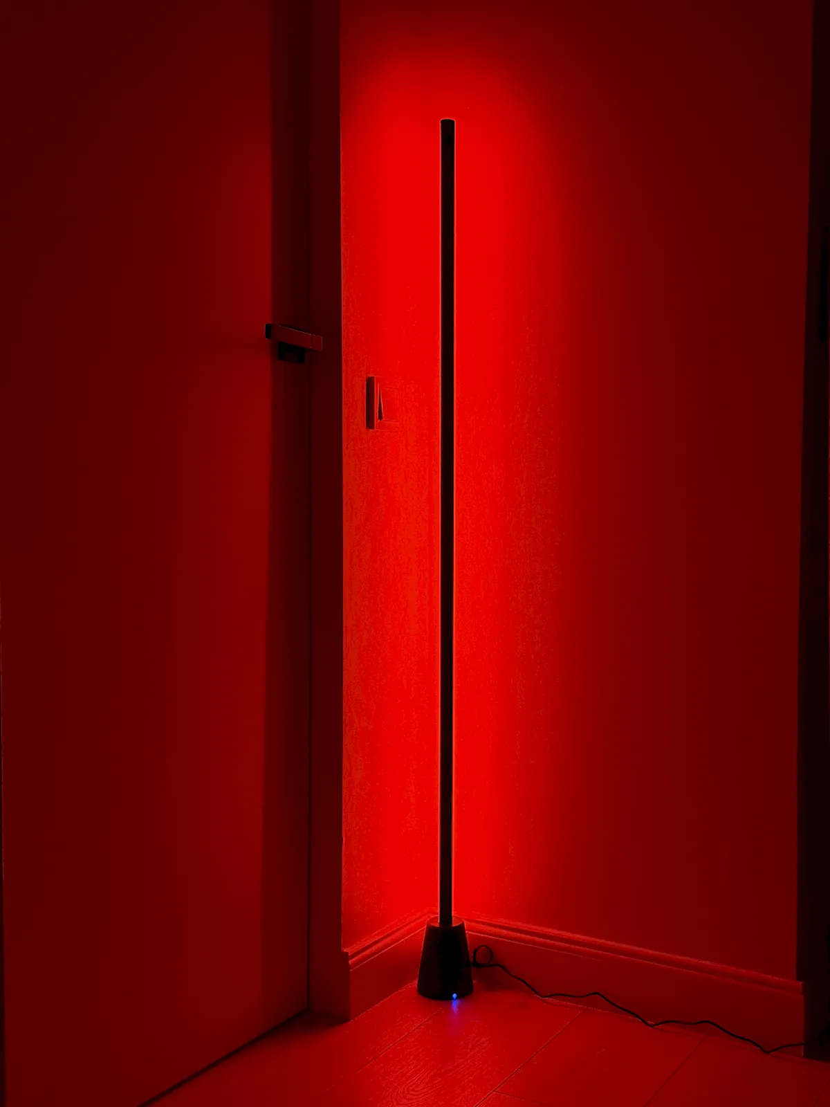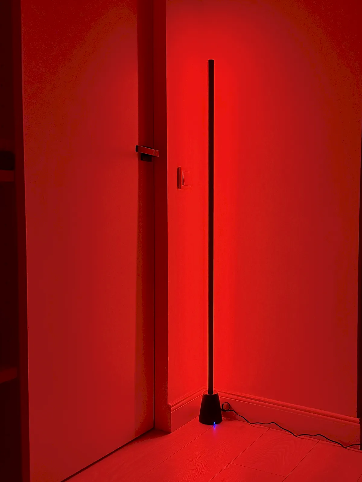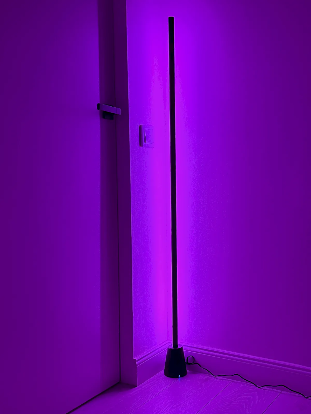 Gradient Floor sau “lampadar RGB de podea” este un tip de lampă, de veioză să zicem, care asigură iluminat ambiental colorat într-o cameră. Poate fi chiar o veioză, la nevoie, dacă-l aprinzi pe alb. Astfel de lămpi, însă, sunt de fapt gândite să fie plasate cu banda LED către perete sau către un colț de cameră pentru a arunca lumina colorată pe perete, nu spre ochii persoanelor din cameră.