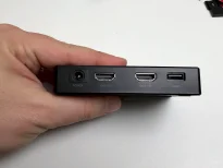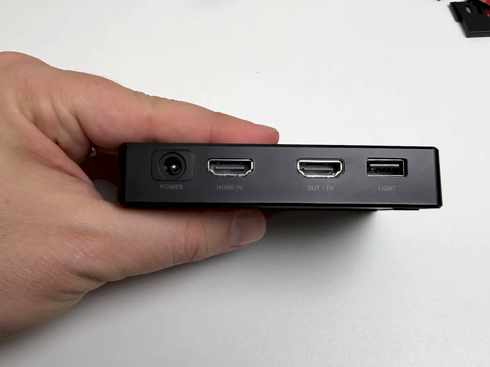 Cutia în sine este mică și ușoară, adică poate fi lipită pe spatele televizorului cu niște bandă dublu-adezivă pentru a o ascunde complet. Are HDMI in și HDMI out la 4K cu 60 Hz, pe unde face passthrough-ul, plus un port USB pe care controlează luminile.