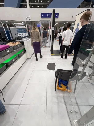 De asemenea, au modernizat sistemul de tăvi în care-ți pui obiectele personale. Acum nu mai este un teanc mare de tăvi de unde te duci să-ți iei una sau două, ci tăvile circulă pe o bandă care le aduce la îndemâna oamenilor.