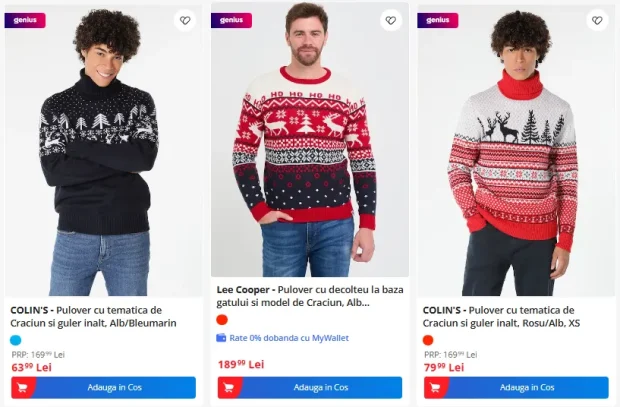 Din vreo 8600 de pulovere de bărbați listate pe eMAG de mulți selleri, în filtrul numit Crăciun sunt doar trei.