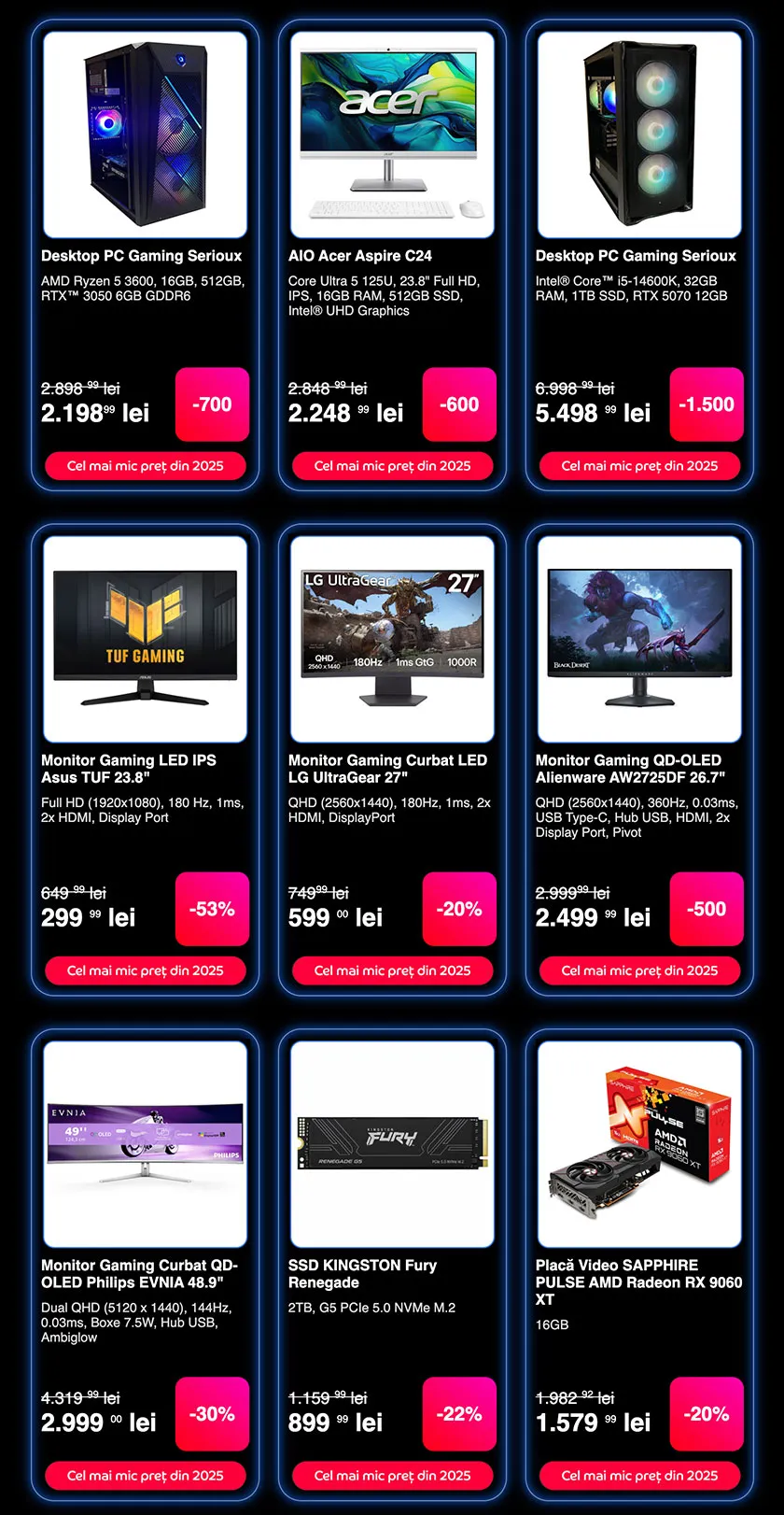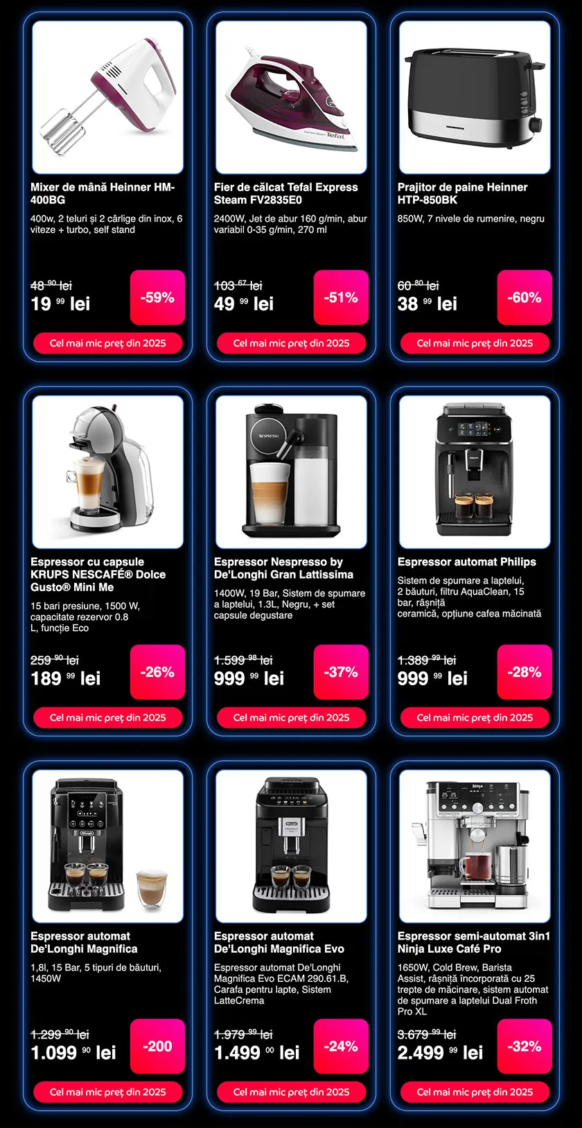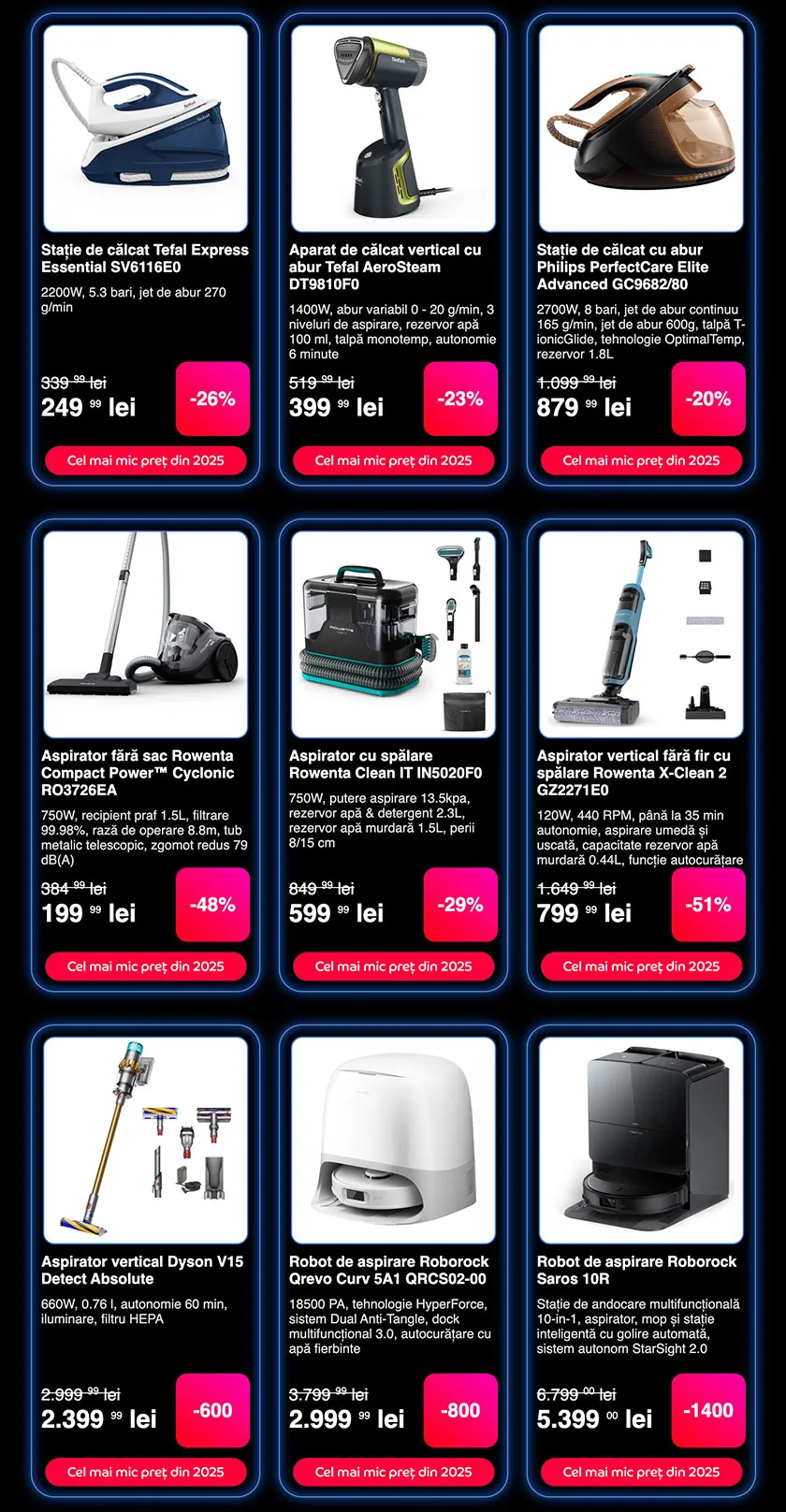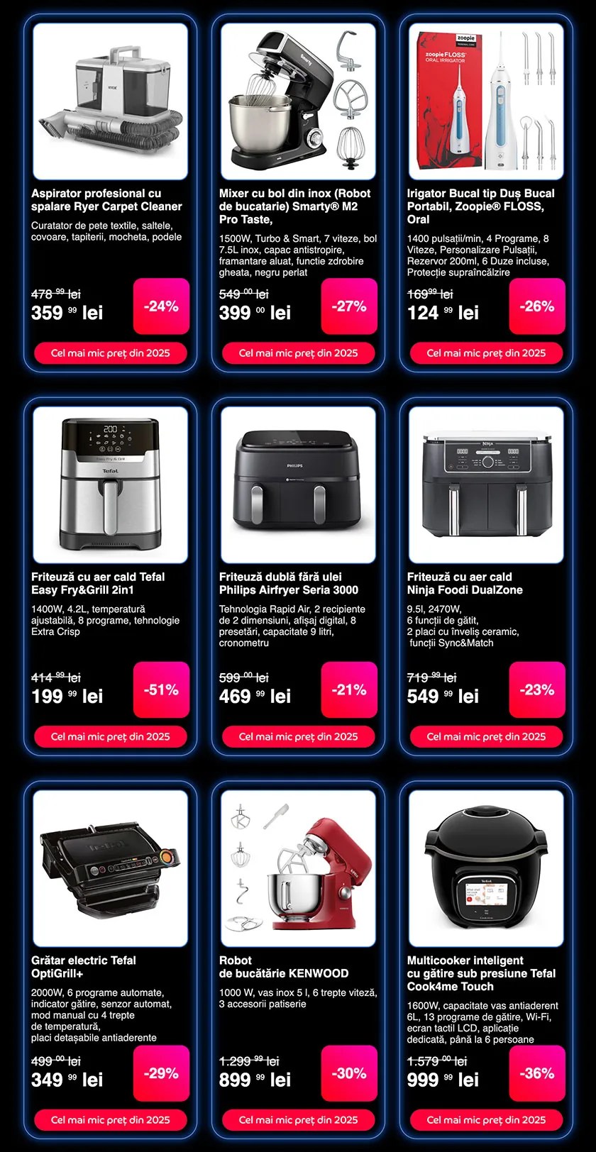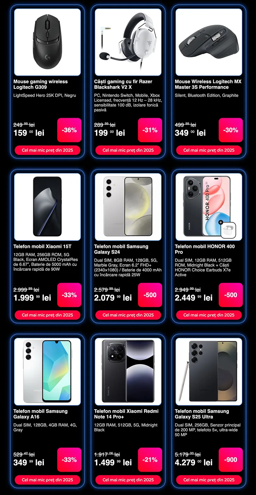 Sigur, apare și el un pic mai târziu, cei de la eMAG se jură că-l trimit în curând, și mă aștept să vedem în el și televizoare LG și câte un iPhone 16, un GoPro, un espressor automat și altele, dar grosul produselor-vedetă este deja cunoscut.