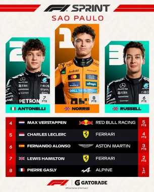 Cursa din Brazilia a fost spectaculoasă în ultimii ani. În 2024, Verstappen a plecat de pe locul 17 și a câștigat, pe ploaie, după un pilotaj extraordinar. Anul acesta a plecat penultimul, de pe linia boxelor, și a terminat pe locul 3. La vârf, însă, Norris s-a detașat în fața lui Piastri după două rezultate excelente în cursă și în Sprint.