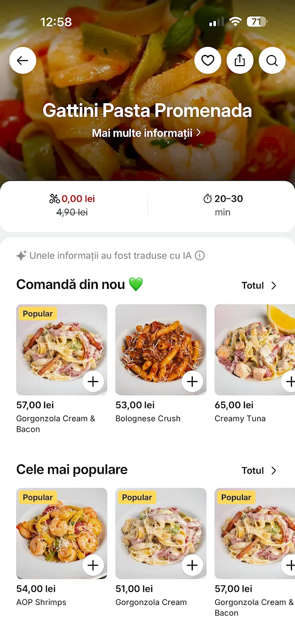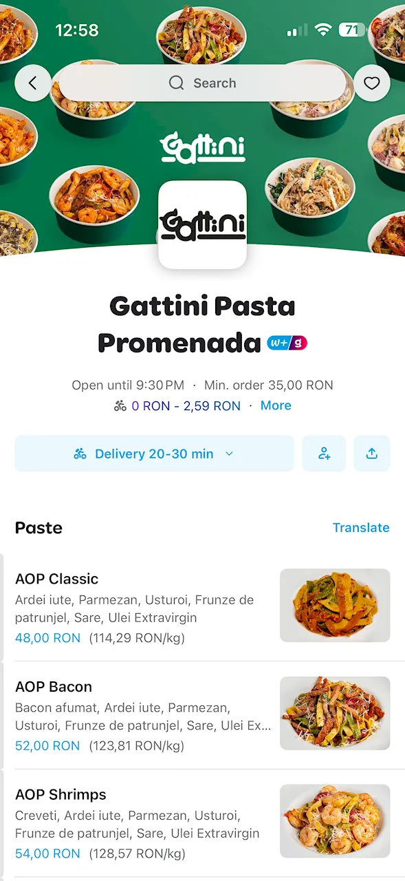 Gattini au deschis un restaurant și în mallul Promenada, iar acum toți cei din nordul capitalei pot comanda și cu livrarea pastele lor (și lasagna!) pe Bolt Food și Wolt. Gattini este unul dintre restaurantele mele preferate. I-am recomandat mereu cu plăcere și toți cei care au mâncat de acolo mi-a spus ulterior că au mâncat foarte bine, mi-au mulțumit și mi-au trimis și câte un cadou, cum se face când primești o recomandare bună de local.