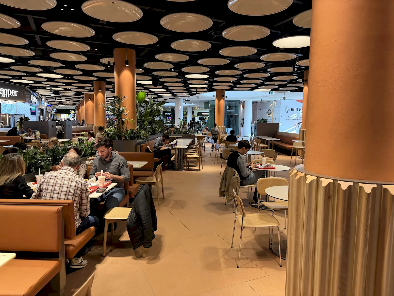 Zona nouă de food court arată altfel. Este decorată în culori calde, cu lemn mai mult, și pare mai aerisită. Nu știu dacă vor reface întreg food court-ul pe aceleași principii de design, dar arată bine totul. Mai trebuie să se deschidă o cafenea Boiler. În paralel, NEPI Rockcastle construiește la extinderea mallului cu o nouă aripă mare, cu 6-7 niveluri subterane de parcare, spații comerciale, spații de birouri și poate și hotel, conform zvonurilor.