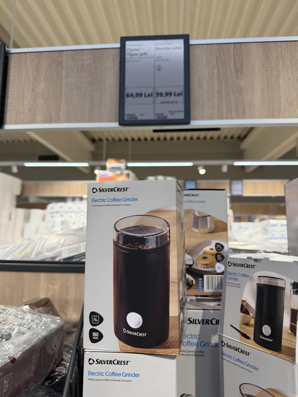 Mai au râșnițe clasice la 40 de lei, marca Silvercrest. Am luat una pentru bunica Matildei, care voia o râșniță nouă și îi comandasem de pe eMAG una pe la 90 de lei, de Black Friday. Asta s-a lăsat cu o discuție de forma “dar la Lidl avea cu 40 de lei, am văzut eu la televizor!” și noi zicând “eh 40 de lei, or fi avut 3 bucăți, de unde să mai găsim?”. Apoi azi am mers la un Lidl (cel de pe Fizicienilor) și era un raft plin. Au de două tipuri, ca în imagine unde se apasă un buton de pe lateral pentru râșnire, dar și modelul cu buton integrat direct în capacul transparent, stilul clasic.
