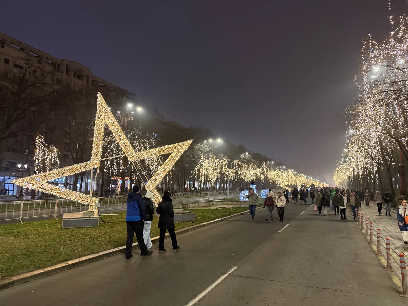 De pe scena foarte mare s-au auzit doar colinde și urări, cu diverse ansambluri folclorice cântând foarte plăcut. Am intrat când era o trupă de colindători din Banat. Am plecat când era un cor ce cânta minunat colinde culte. Din alte părți nu răsuna deranjant muzică. Pe Palatul Parlamentului rula o proiecție mare de tot.
