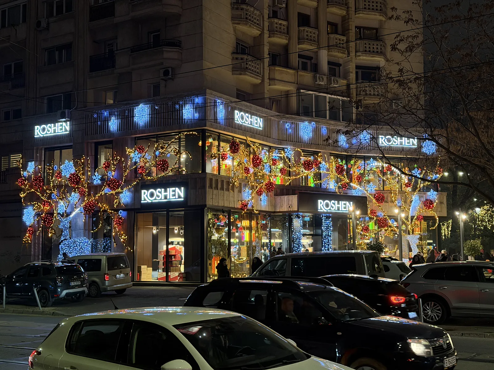 Bonus: magazinul Roschen din Piața Unirii este foarte frumos decorat și era plin de oameni care cumpărau bomboane: