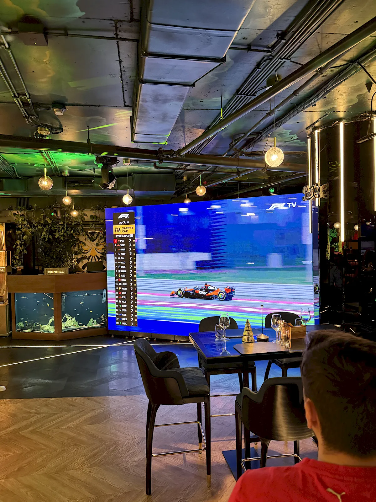 Am văzut cursa la Naive, apropo, unde Chivas Regal a organizat un watch party. Erau 4 etaje acolo și la fiecare erau puse ecrane de mari dimensiuni pe care s-a dat F1 TV. Strategia McLaren a părut mai puțin dezamăgitoare când am văzut-o cu un cocktail în mână și mușchiuleț de vită cu sos de piper verde la bufet. A pus apoi muzică Andi Moisescu, un mix de retro dance.
