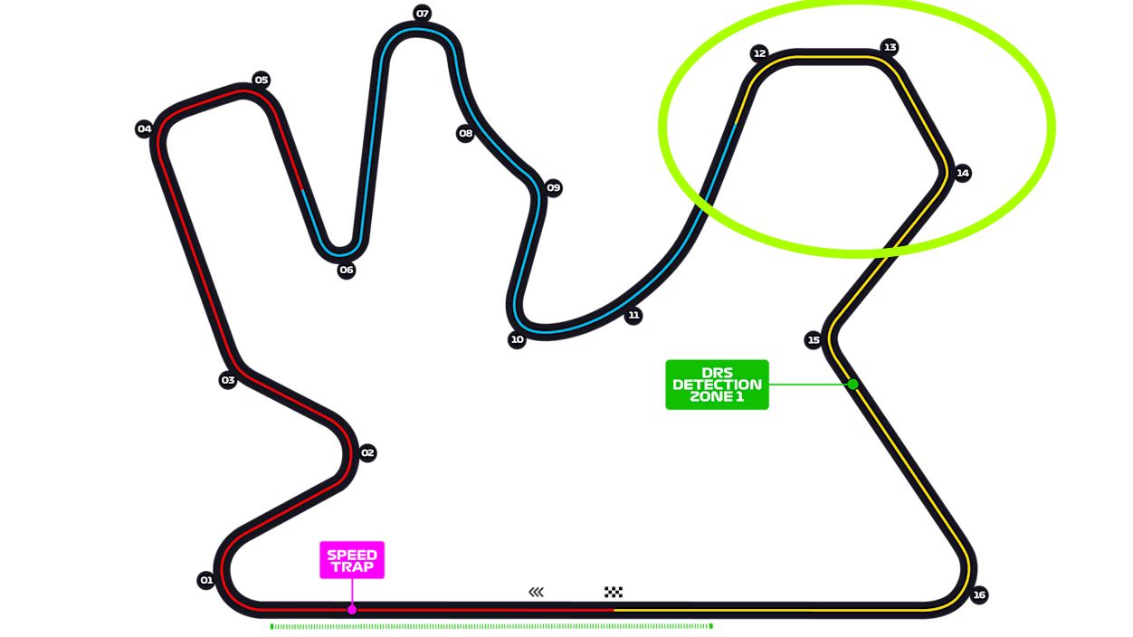 Așa a decis Pirelli ca regulă impusă pentru siguranța piloților. De vină este înșiruirea de viraje 12-14, care sunt curbe destul de largi, de dreapta, prin care se trece cu 285 km/h și forțe de 4,5G.