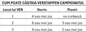 Cum poate câștiga Verstappen? Are nevoie de podium și de mult noroc: