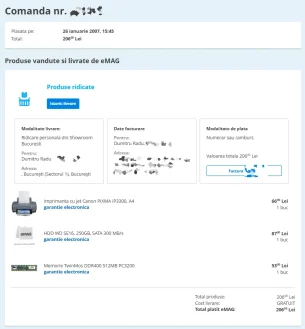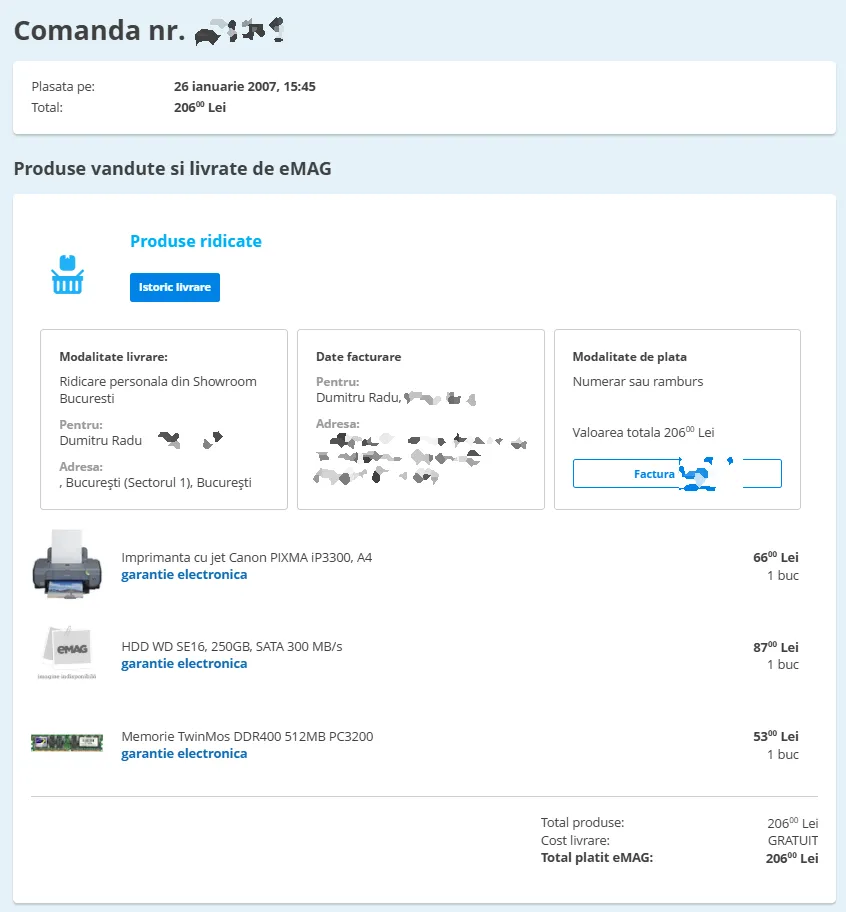 Eu sunt client de 18 ani, zice contul meu, 19 ani în ianuarie. Mai scrie acolo și că am lansat 679 de comenzi, ceea ce pare puțin. Cred că doar anul acesta am lansat în jur de 80-100. Poți să vezi primele comenzi în contul tău, dacă-i dai afișare la toate și apoi te duci direct la ultima pagină. Cea de mai jos a fost prima mea comandă și am râs acum văzând prețurile, dar bănuiesc că nu s-au transferat bine la vreo migrare de bază de date: