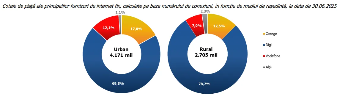 ➡️ Digi are o pondere de 70% conexiuni fixe în mediul urban și 78% în cel rural.