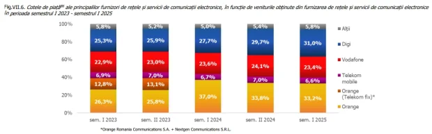 ➡️ Și cota de piață după venituri obținute din toate serviciile de telecomunicație:
