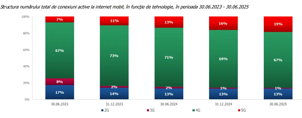 ➡️ 1 din 5 conexiuni active de internet mobil a utilizat 5G.
