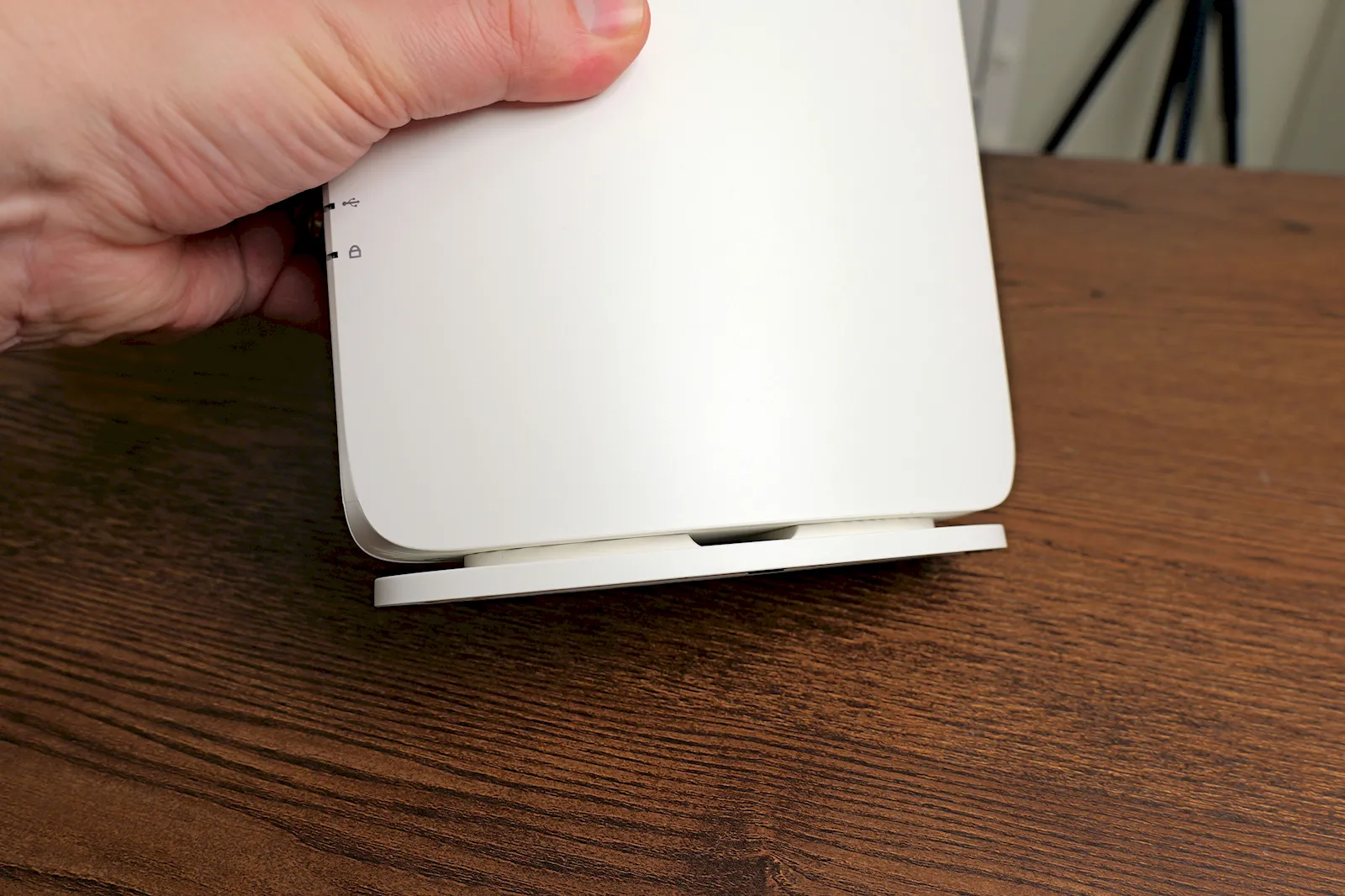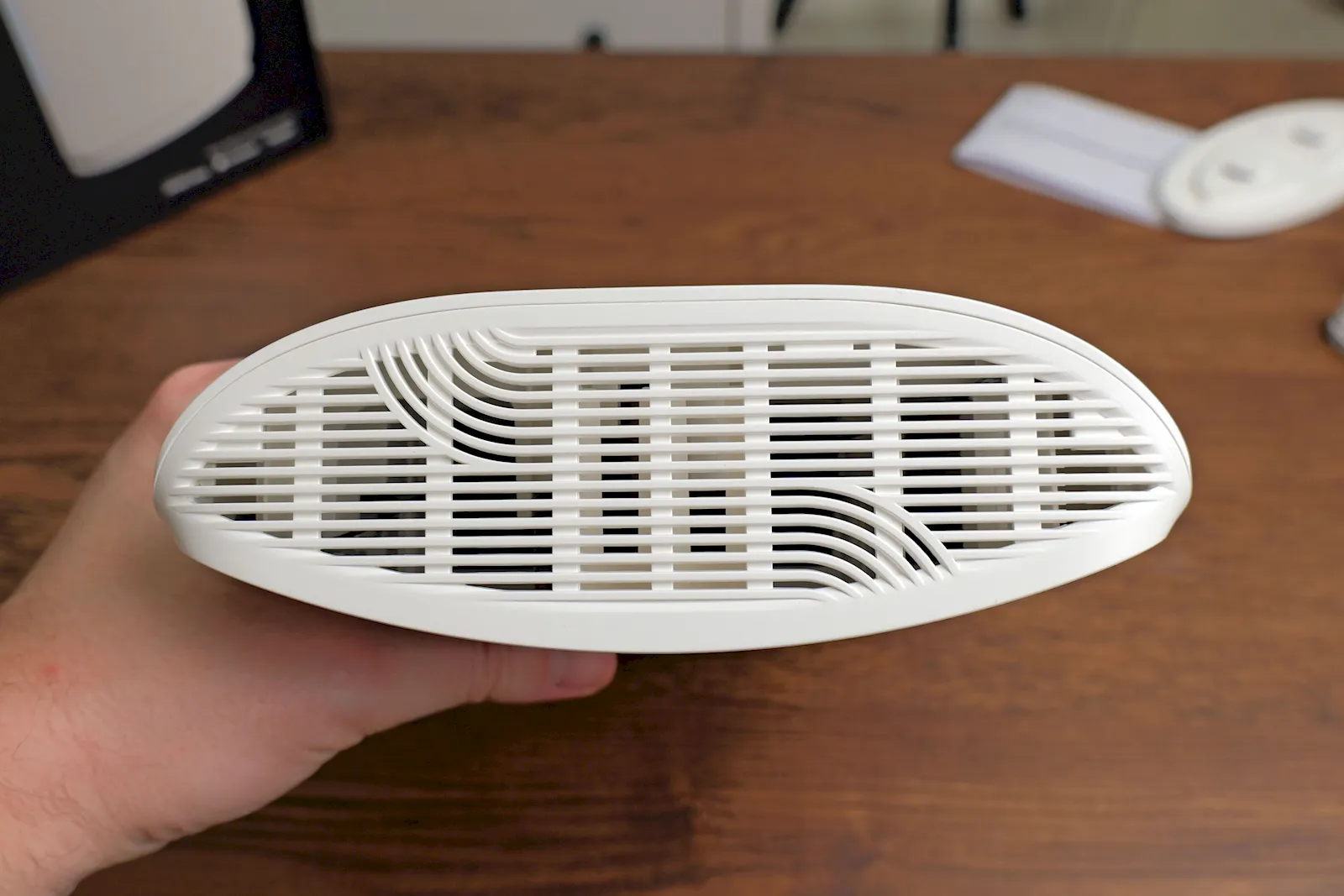 Routerul în sine este mai mic decât mă așteptam. Poza de pe cutie îl face să pară voluminos, dar în realitate este cam ca orice alt router uzual, iar faptul că are antene interne îl face să ocupe chiar mai puțin loc decât majoritatea.
