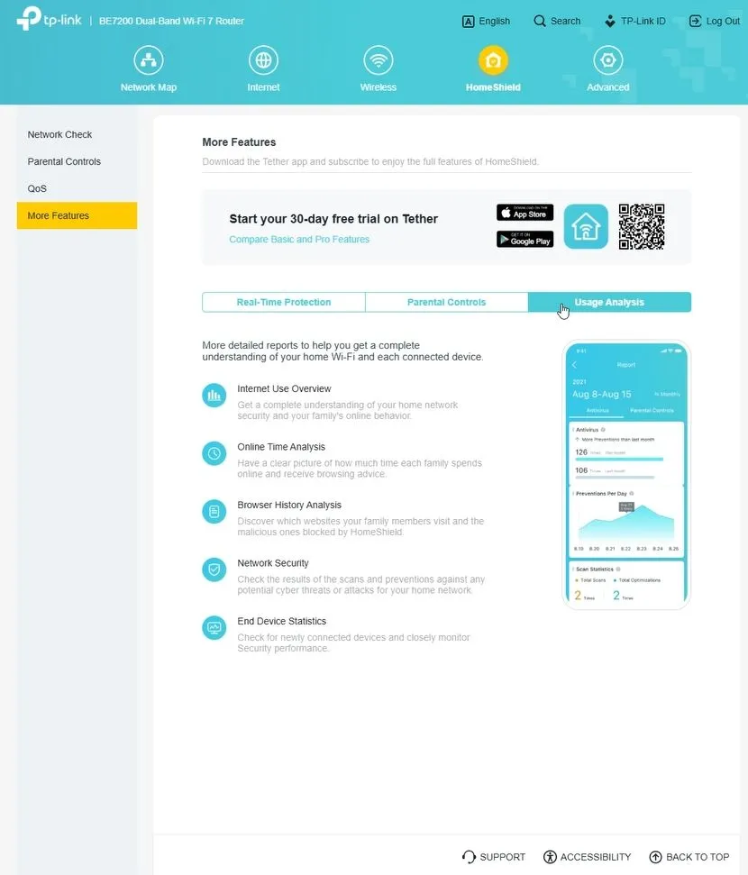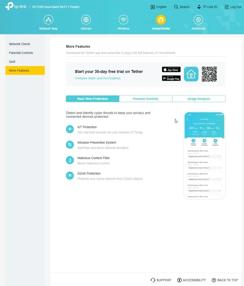 Dacă doriți, puteți să vă și abonați de acolo la HomeShield, care este un modul de protecție antivirus și antimalware la nivel de rețea. Acesta scanează dispozitivele și traficul din rețea, face izolare automată în caz de probleme, trimite alerte și notificări. Are și un free trial de 30 de zile, deci îl puteți testa înainte de a vă abona pe termen lung.