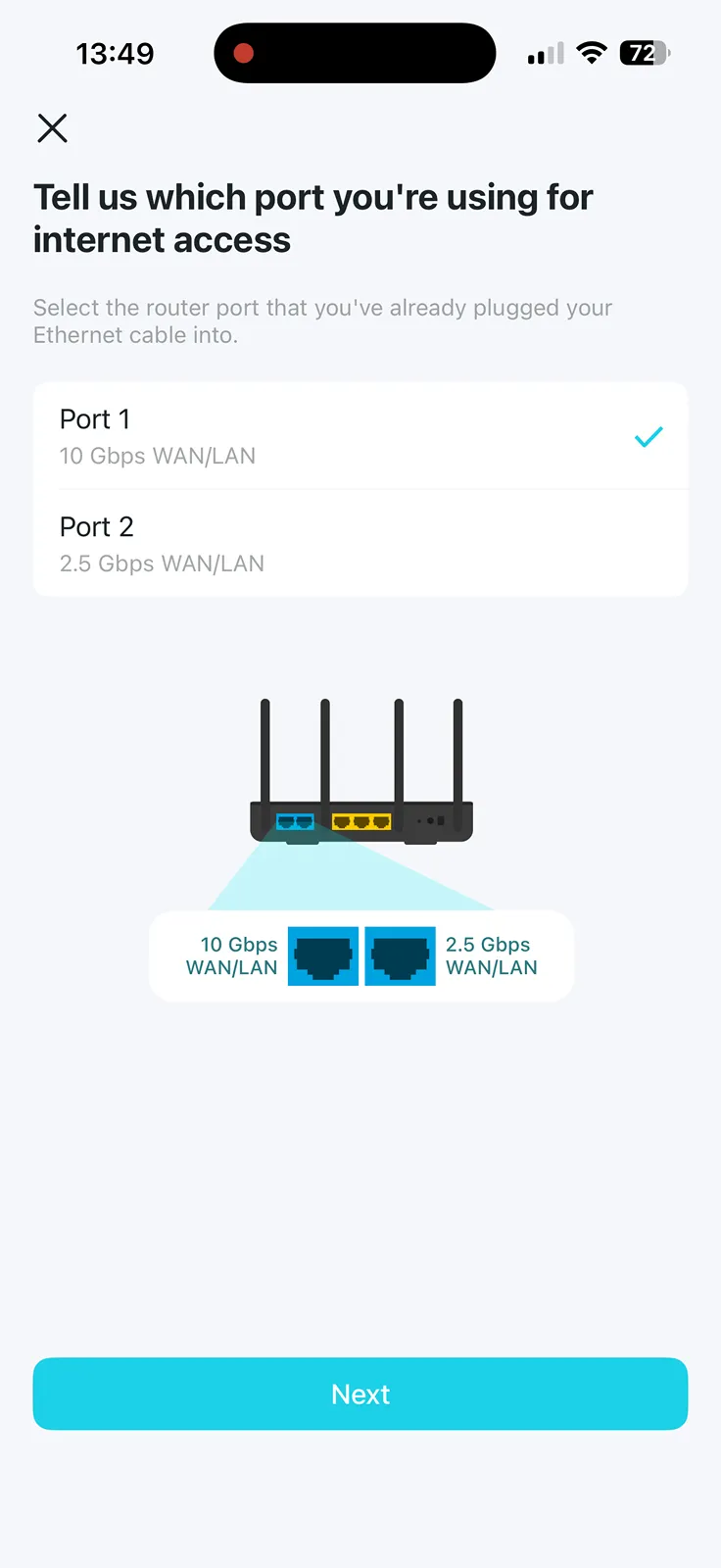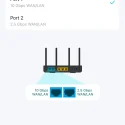 Puteți conecta Internetul, ca să zic așa, în portul de 10 Gbps au în cel de 2,5 Gbps. De ce l-ai conecta în cel de 2,5 Gbps și nu în 10 Gbps? Pot fi diverse situații, de exemplu dacă ai în rețeaua locală un server NAS rapid, care deservește mulți clienți prin wireless, și vrei să duci acolo mai degrabă o conexiune de 10 Gbps.