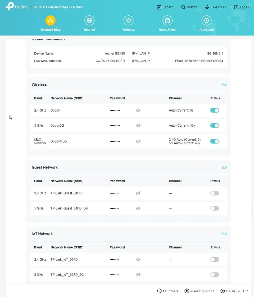 Routerul BE450 mai face și alte rețele. Ai opțiuni de rețele guest pe fiecare bandă de frecvență, dar și de rețele speciale pentru IoT. Această opțiune creează câte o rețea wireless pe 2,4 și pe 5 GHz și ideea este să conectezi pe acelea dispozitivele smart home, precum camerele video, senzori diverși, vreo boxă Google Home șamd, ca să aibă rețeaua lor separată și independentă.