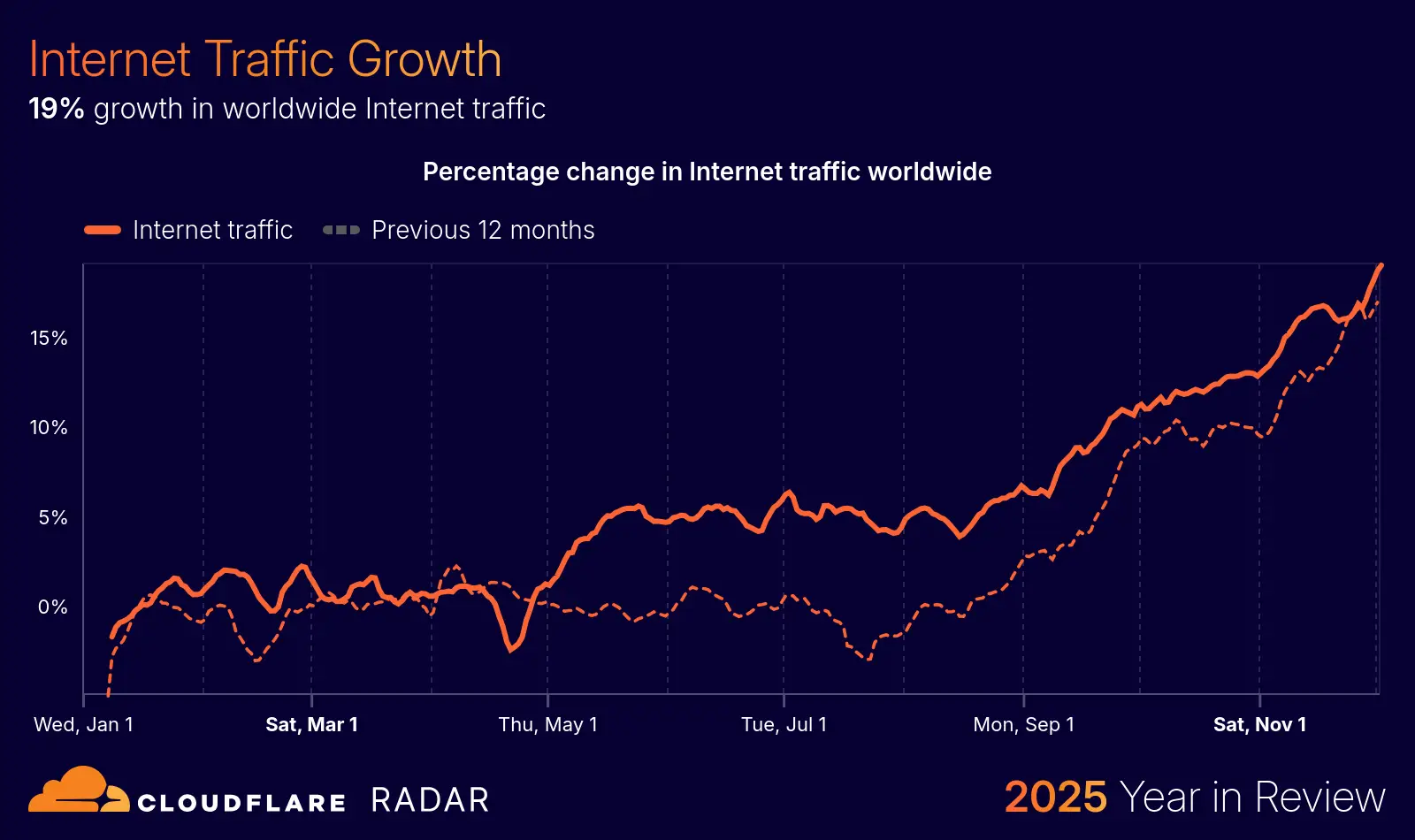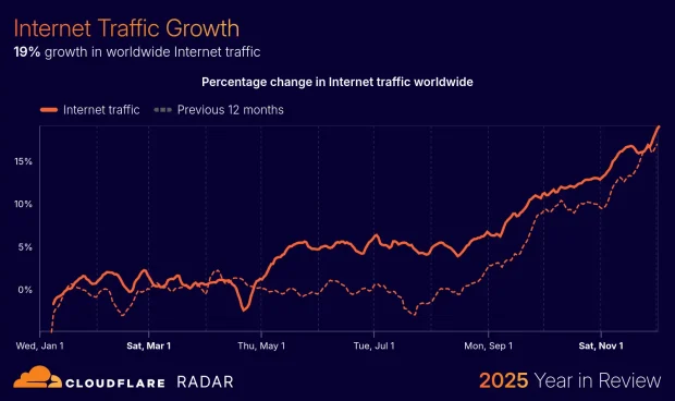 De exemplu, traficul total pe Internet a crescut cu 19% în 2025.