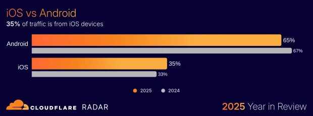 ➡️ 65% din trafic este de pe Android, dar în scădere. Traficul de pe iOS crește. În România, raportul este de 70% pentru Android.