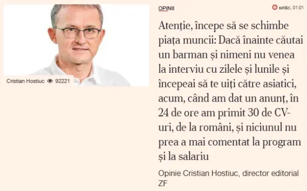 Sigur, Hostiuc reprezintă visul de aur al patronașilor băștinoși rupți în dos, sa le accepte angajatul fara comentarii condițiile oneroase, neosclavagiste. Și evident sa nu comenteze la salariu, cum zicea individul ăla de la Terapia (parcă). Pentru că angajatul s-a născut sa sclavageasca la unul care oricum nu mulțumit de nimic, niciodată.