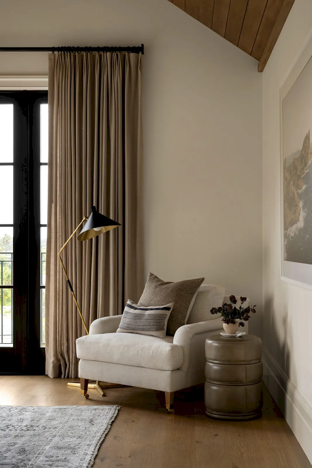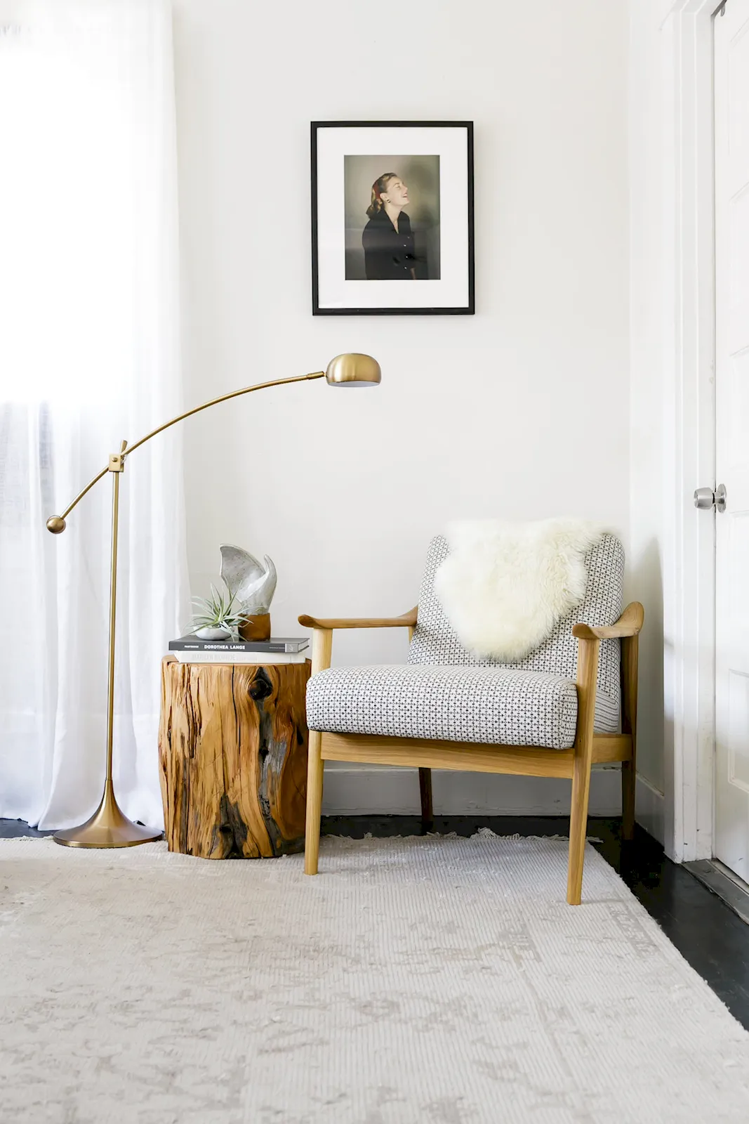 De exemplu, mă uitam pe o listă cu idei de amenajare a unui astfel de colț și una era cu fotoliul de mai jos, care are mânere înguste de lemn. Mie acel gen de fotoliu nu mi se pare confortabil. Mie îmi intră lemnul acela în coaste, plus că nu prea poți sta “de-a curmezișul” pe el, rezemat de cotieră.