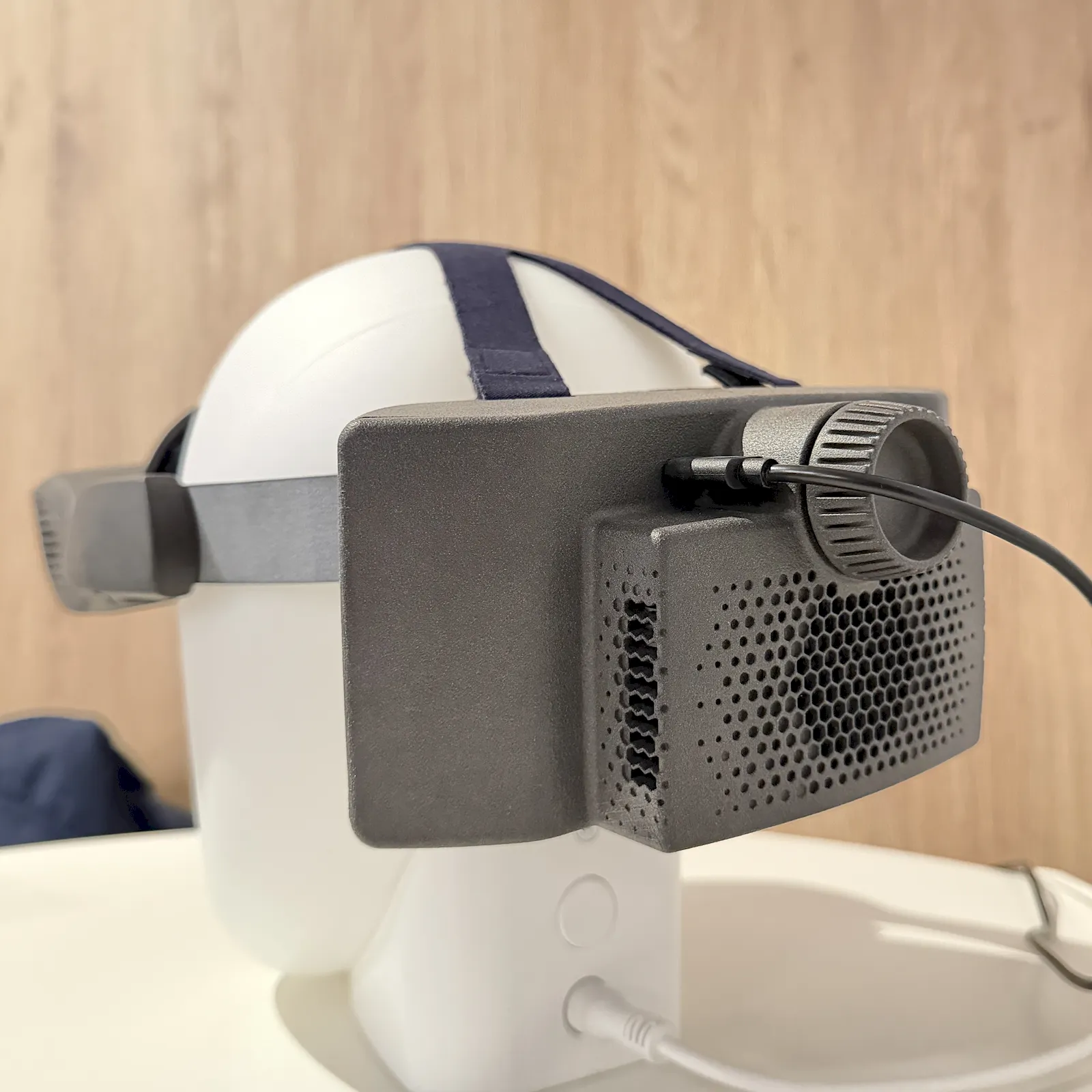 Casca în sine este, în primul rând, un dispozitiv de ghidaj. Are pe ea mai mulți senzori care detectează obstacolele din calea persoanei nevăzătoare și îi “spune”, prin vibrație, pe unde poate să circule în siguranță.