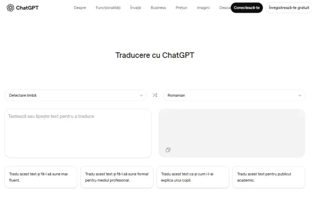 Pe scurt, dacă nu vă place Google Translate, puteți merge acum în ChatGPT Translate și să faceți acolo traduceri. Puteați însă să faceți asta oricum și în ChatGPT clasic, spunându-i “tradu în română următorul text” și un mare copy paste acolo. Se prindea el de tot ce trebuia făcut.
