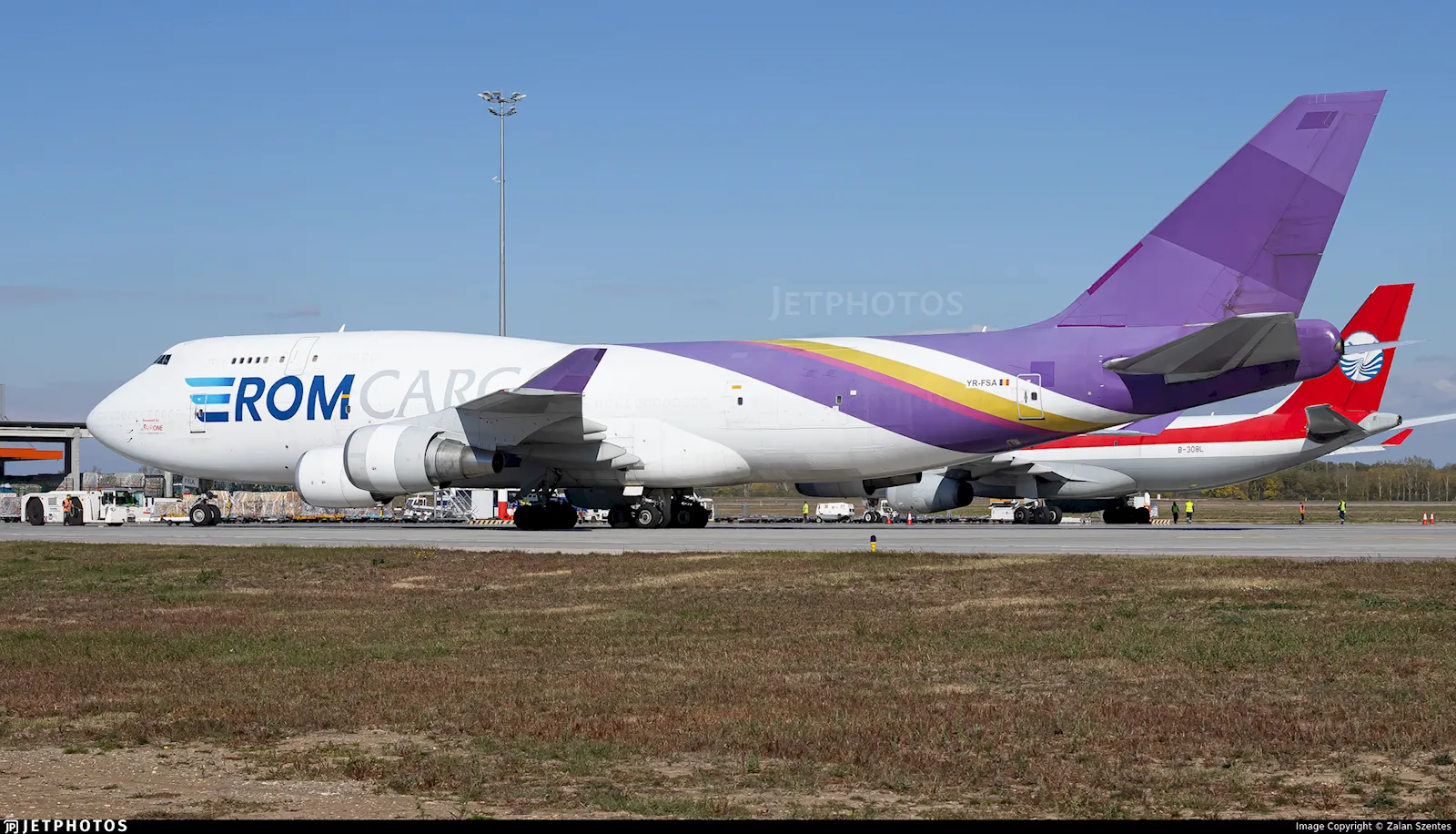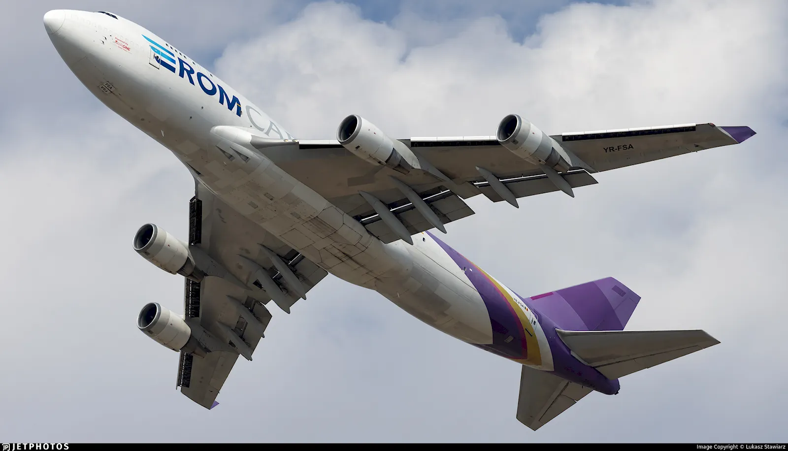 Nu știam însă că există o companie românească ce operează Boeing 747. Romcargo, anterior numită Fly Sky (de unde și înregistrarea cu YR-FS#), este o companie înființată în 2019 de un român, acționar unic, și care a avut o cifră de afaceri de 51 de milioane de lei în 2024. Are oficial sediul în aeroportul Otopeni.
