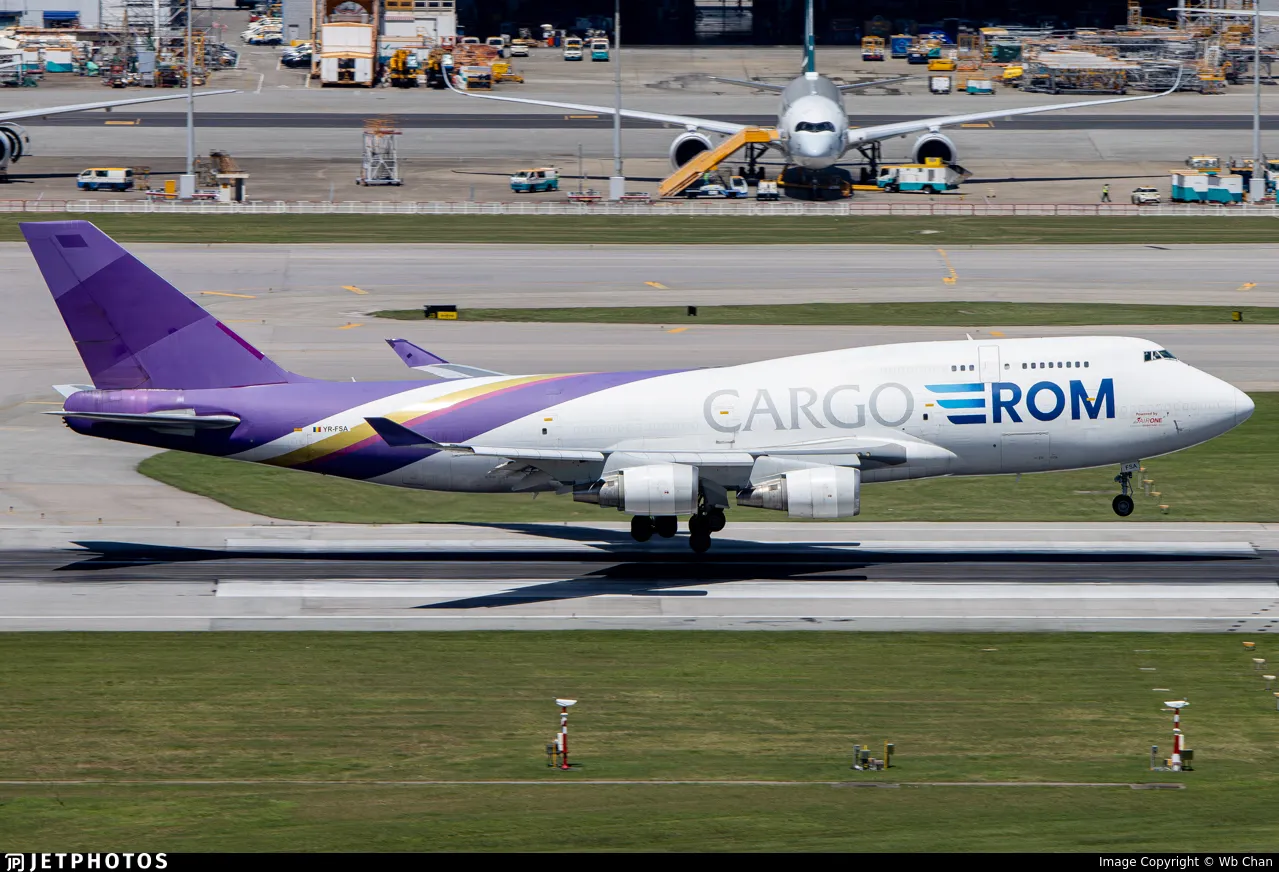 YR-FSB are 33 de ani vechime și a fost inițial un avion la EVA Air, o companie taiwaneză, și convertit în 2007 în avion de marfă. A trecut pe la EVA Cargo, apoi Atlas Air înainte de a ajunge la Romcargo.