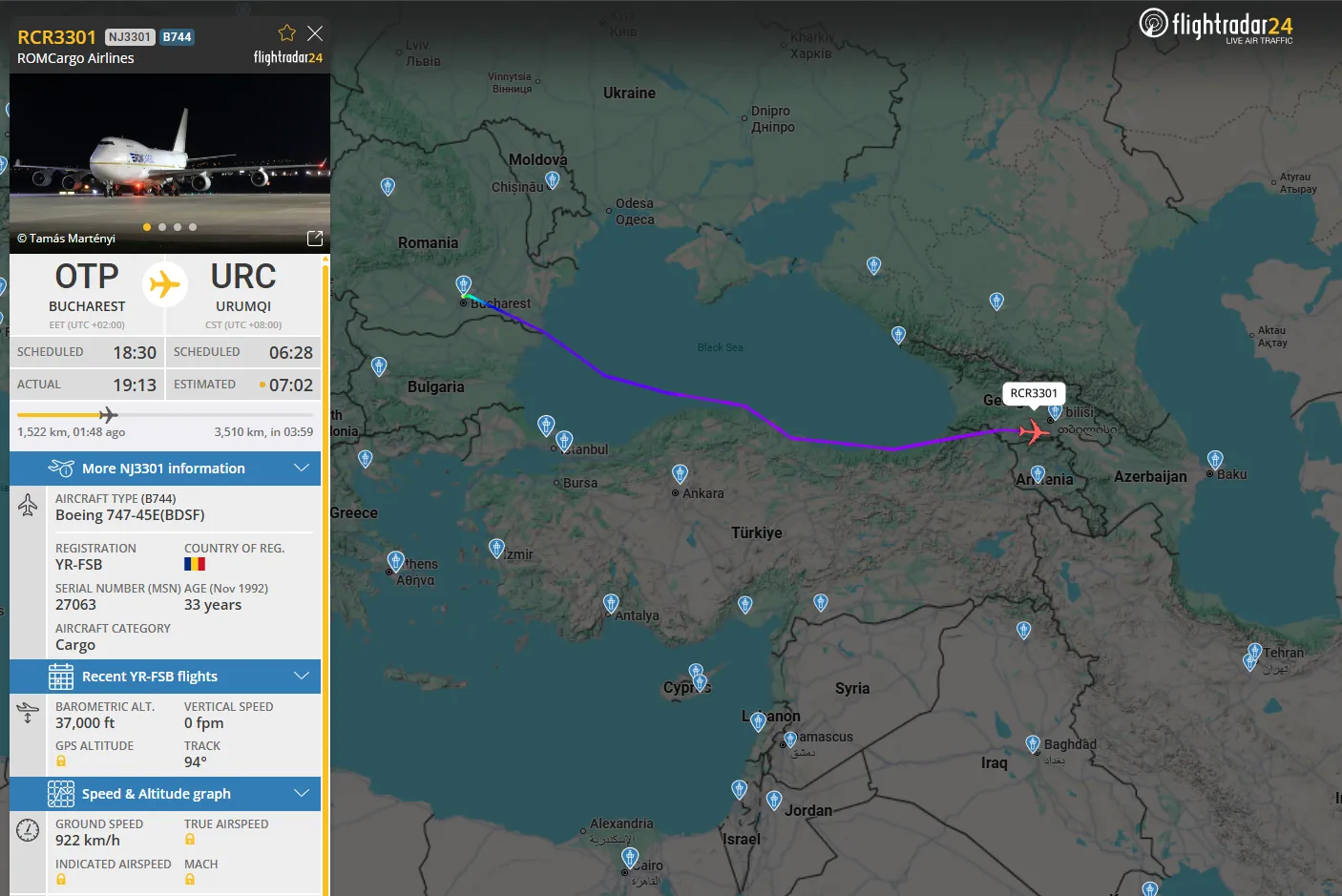 Eu nu. Am văzut unul dintre ele din întâmplare pe Flightradar24, zburând din București în Urumqi, China.