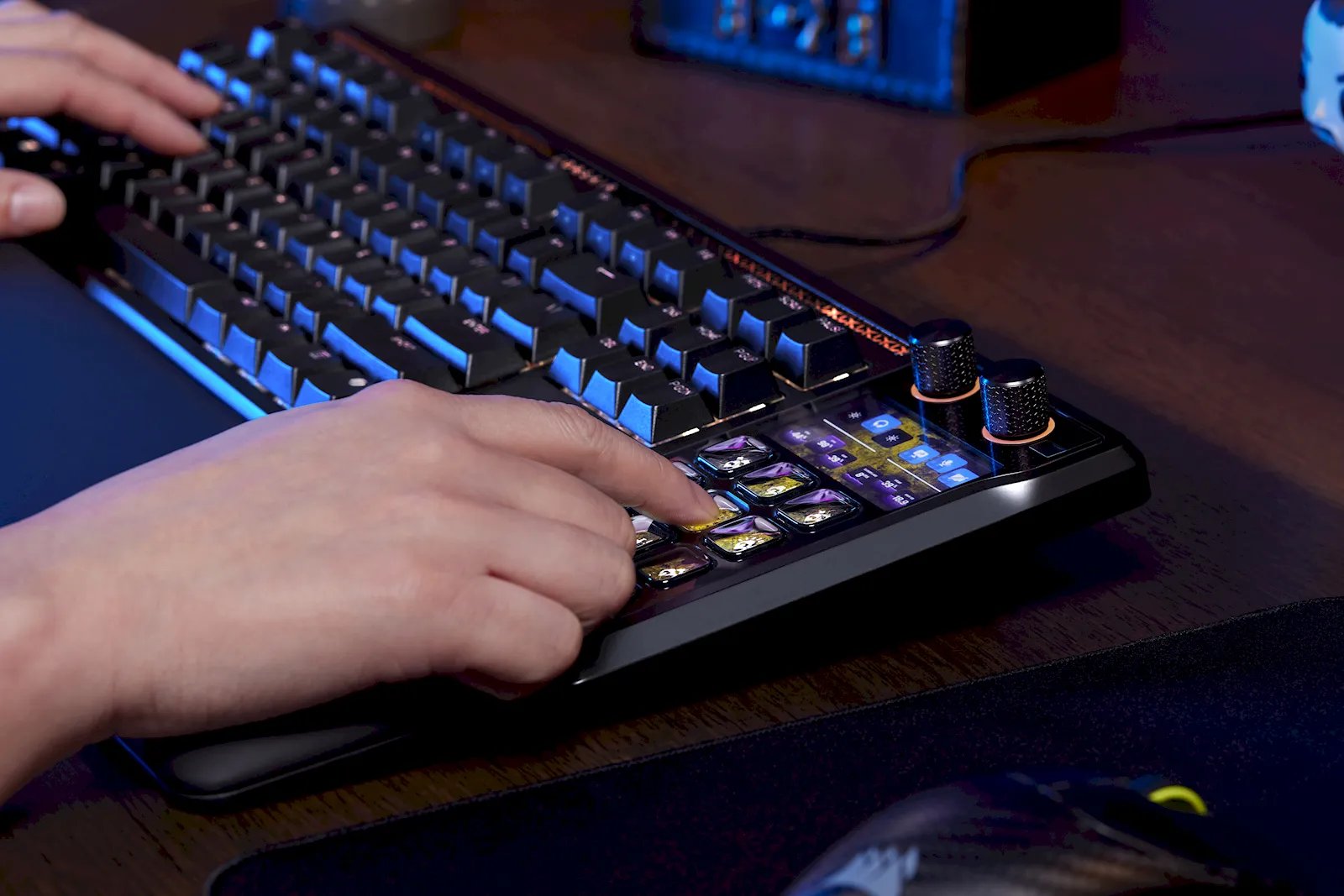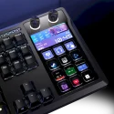 Stream Deck-ul este o mini-tastatură de streaming foarte populară în rândul gamerilor și streamerilor, dar utilă la o adică și în aplicații de muncă, de exemplu pentru a avea butoane suplimentare în editare foto-video. Fiecare buton poate fi configurat în detaliu, în funcție de aplicația activă, iar sub buton sunt de fapt mici ecrane LCD care îți arată funcțiile fiecăruia. Stream Deck+ este chiar mai complex, iar Corsair asta a integrat în Galleon 100 SD.
