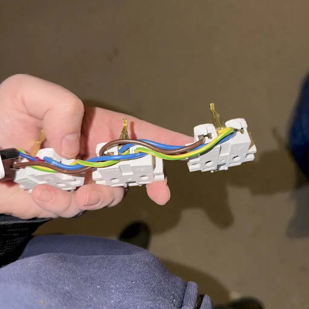 Am deschis-o la un capăt, am conectat firele la circuitul mai mare în care o integram și am închis-o la loc. Eu, însă, sunt foarte precaut când construiesc un circuit electric, în special unul la care au acces și alți oameni, așa că verific totul. În acest caz, după ce am băgat-o sub tensiune, am verificat cu un creion de tensiune fiecare dintre cele trei prize în parte. Majoritatea probabil ar fi verificat-o pe prima, ca să confirme că ajunge curentul electric în ea. Eu le-am verificat pe toate trei. Și… dădea eroare pe undeva.