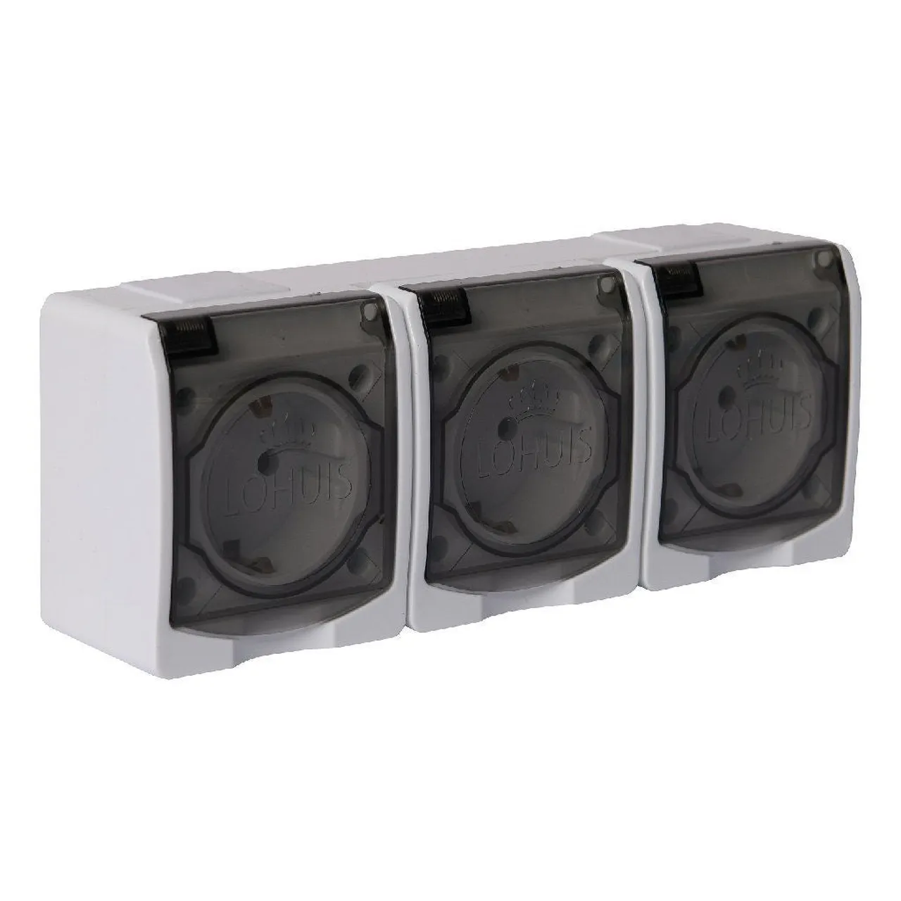 Am cumpărat recent o multipriză cu 3 blocuri, rating IP44, de pus în exterior. Genul acela de priză cu trei posturi și capac pe fiecare.