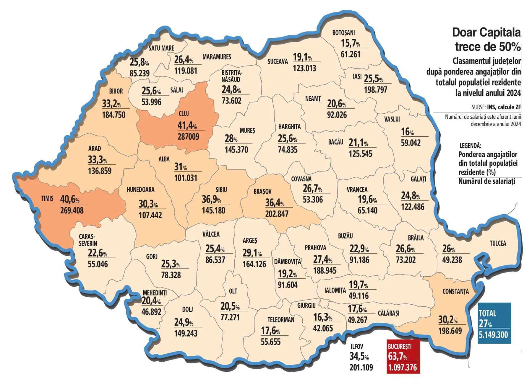 Oricum, București, Timiș, Cluj conduc, urmate de Constanța, Brașov, Sibiu, Alba, Hunedoara, Arad și Bihor.