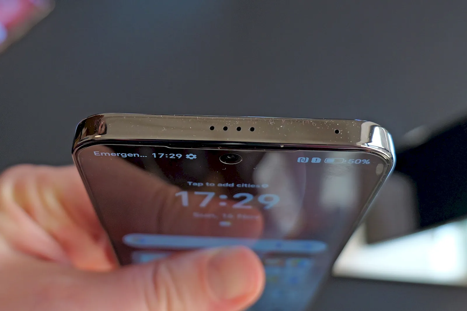 și pe față o cameră selfie de 50 Mpx. Observați senzorul foarte mare al camerei cu zoom optic, care probabil va obține imagini foarte bune.
