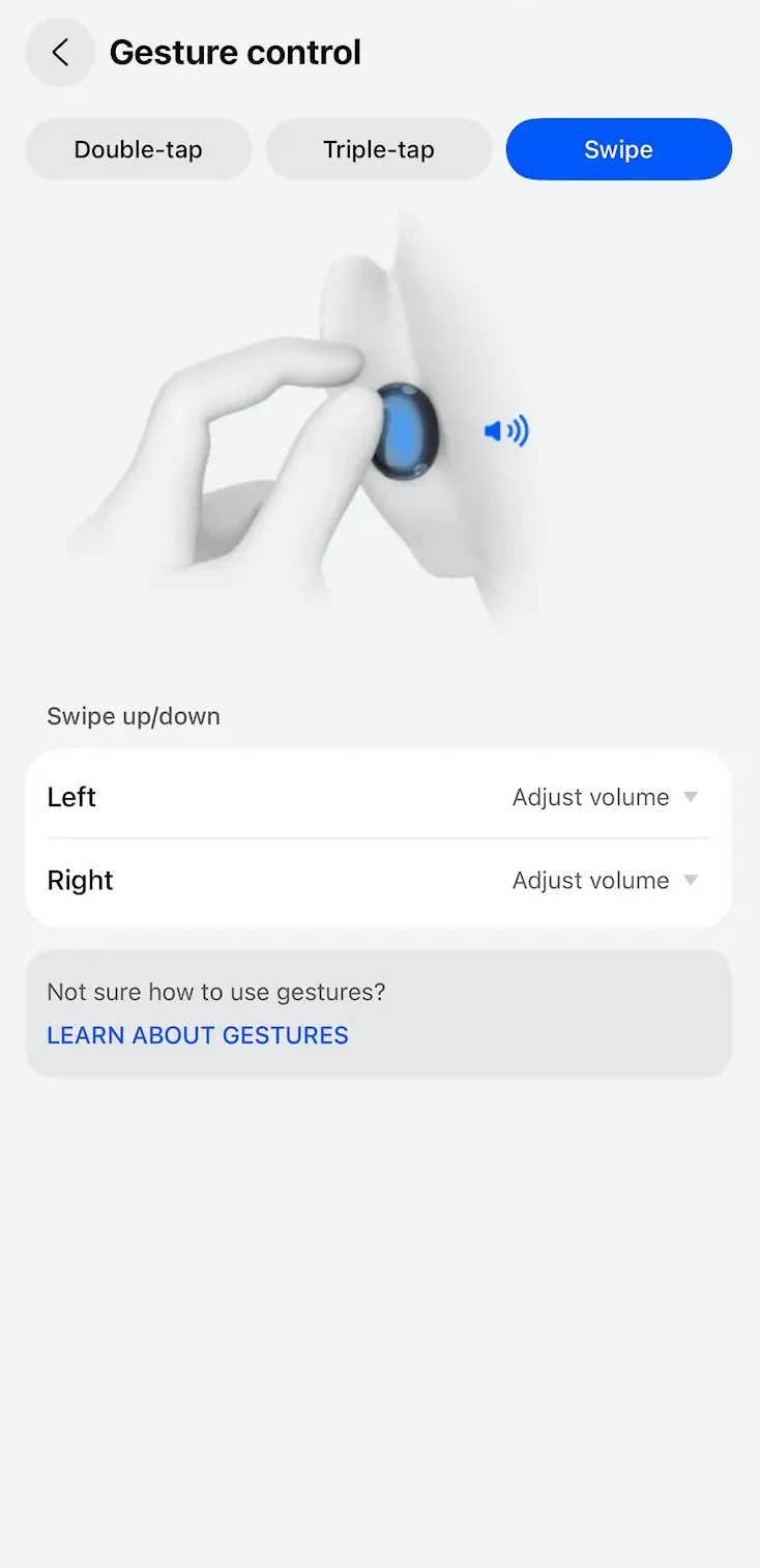 Volumul poate fi controlat prin swipe sus-jos pe bucata de după ureche. În general astfel de lucruri au funcționat fără probleme.