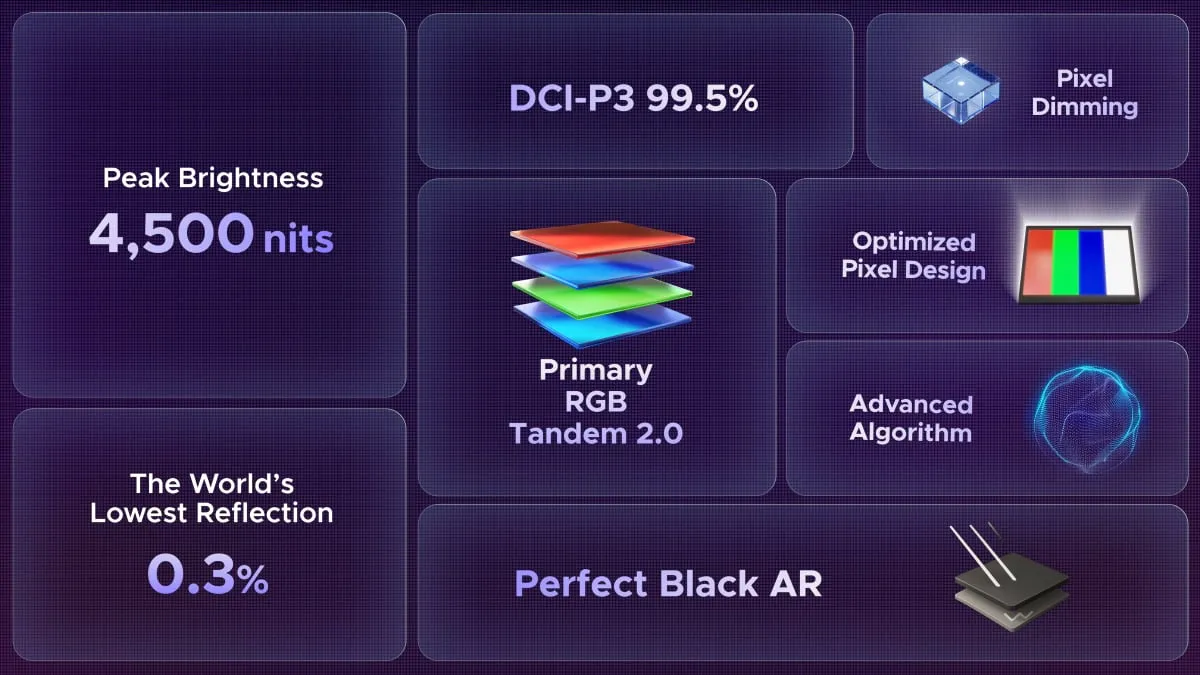 Modelul de top include un panou pe care LG îl numește acum Tandem WOLED. A nu se confunda cu panoul Tandem de pe iPad Pro-uri, care are altă arhitectură.