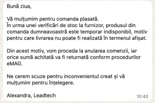 Update 12 ianuarie: comandă anulată, desigur. Pun pariu că le-au anulat pe toate, nu că nu a fost stoc. Produsul apărea în stoc inclusiv la ei pe site vreo 2 zile după ce am scris eu și s-au comandat multe. LEADtech par neserioși cu scuza asta.