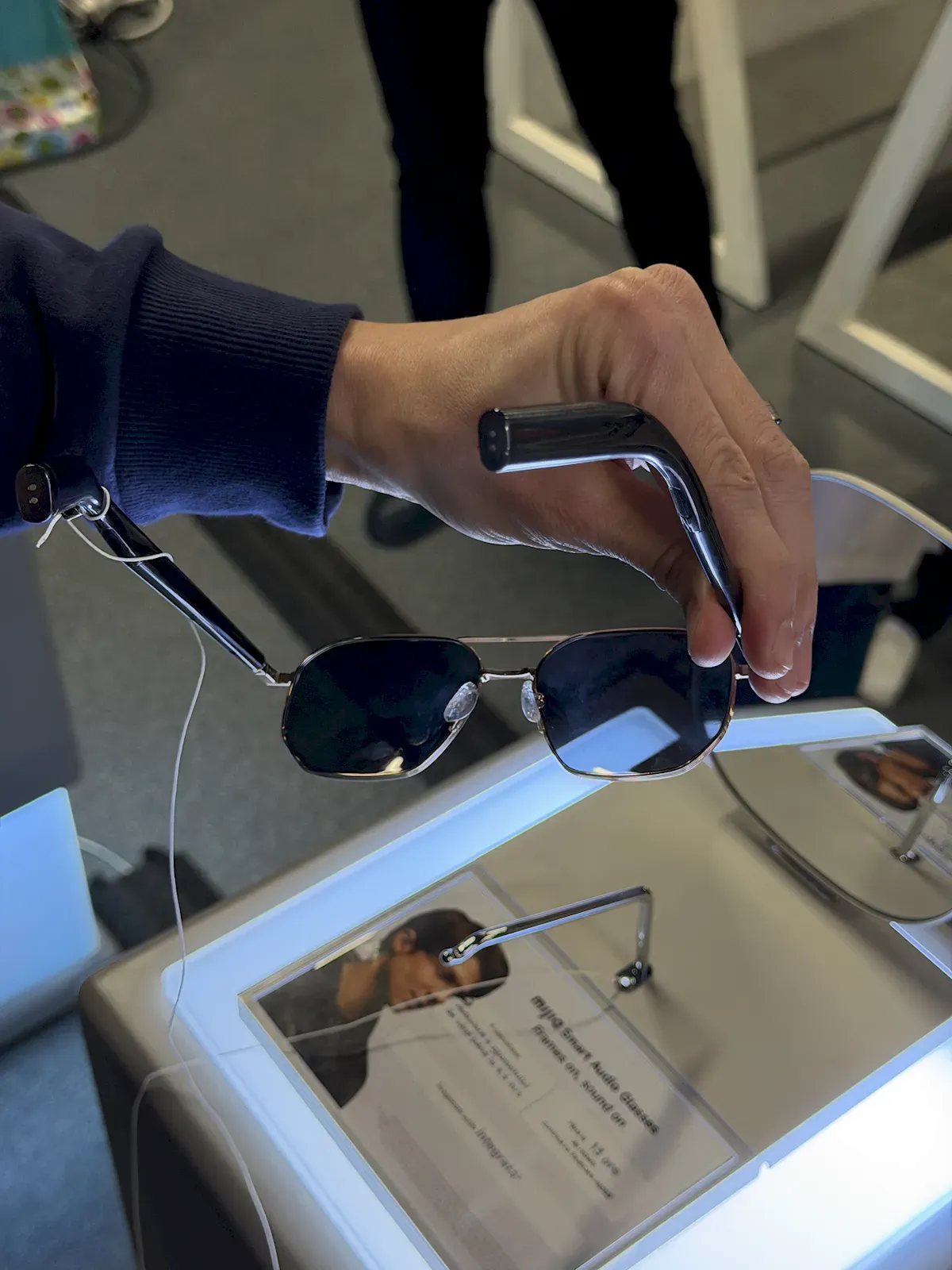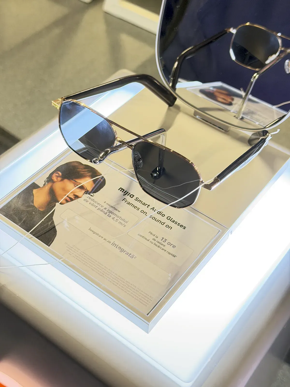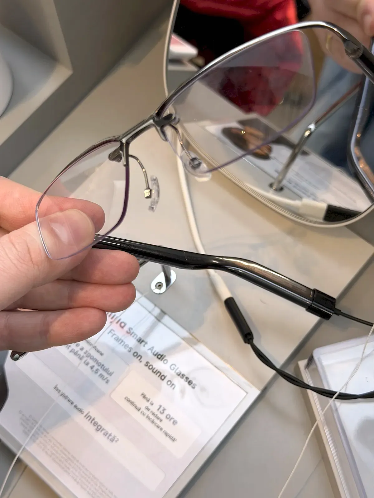 Au mai prezentat și ochelarii Miija Smart Audio Glasses. Sunt ochelari smart, dar nu au camere video precum cei Meta Ray-Ban, ci doar componente audio. Poți să asculți muzică la ei, poți să ții apeluri telefonice, poți să înregistrezi audio și să dai comenzi unui asistent vocal. Au brațele subțiri și rotunjite pentru a sta confortabil la ureche și sunt disponibili în trei variante de lentile: