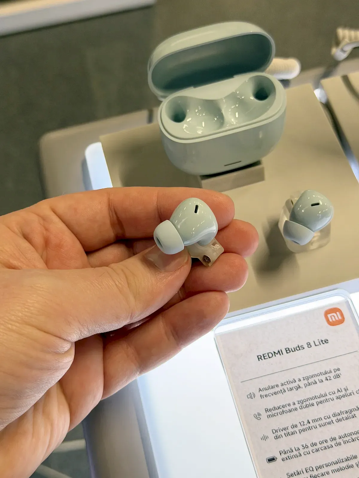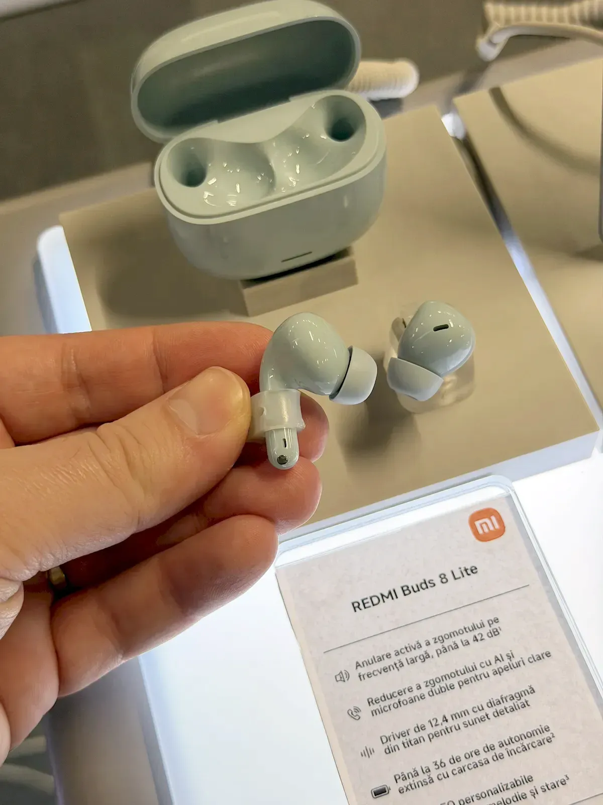 Mai interesante au fost alte două produse lansate aici. Căștile Redmi Buds 8 Lite sunt earbuds cu formă de AirPods 3 (cred că identică) și includ anulare activă de zgomot autonomie de 38 de ore la un preț de 119 lei!