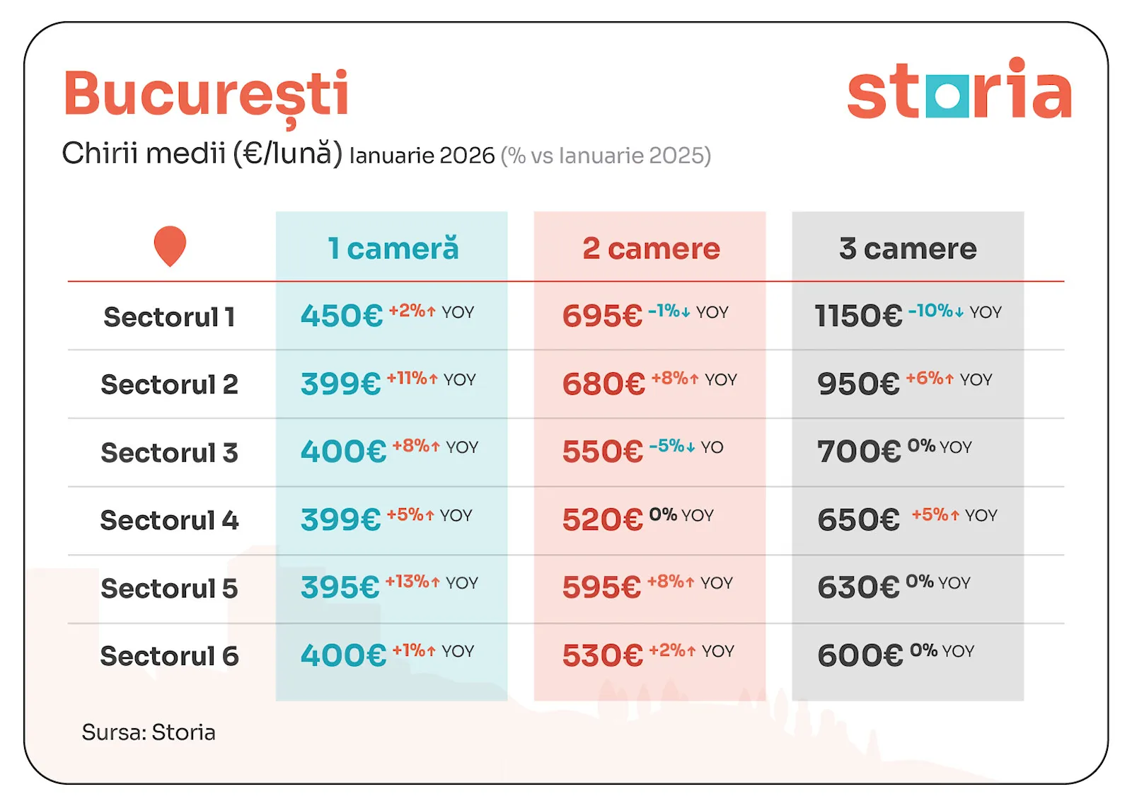 Mai relevante sunt analizele Storia făcute pe datele din propriile platforme. Chiria în București a crescut constant: