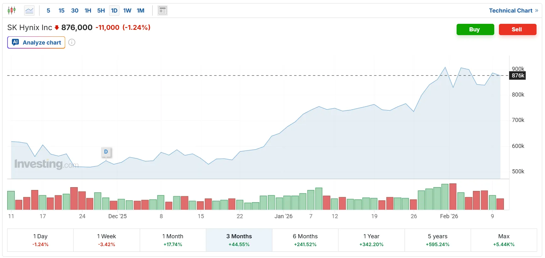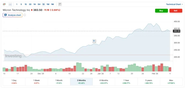 De exemplu, pe fondul crizei memoriilor RAM și a scumpirii lor, Micron, SK Hynix și Samsung au anunțat venituri mari, iar bursa a răspuns în consecință. Micron și SK Hynix, cel puțin, au crescut enorm în ultimele trei luni, iar asta se adaugă oricum creșterii spectaculoase din ultimul an.
