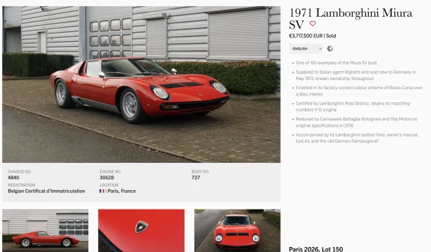 Dar na, este un Miura. Nu de culoare galbenă, care mie mi se pare emblematică, dar s-a vândut cu 3,7 milioane de euro.