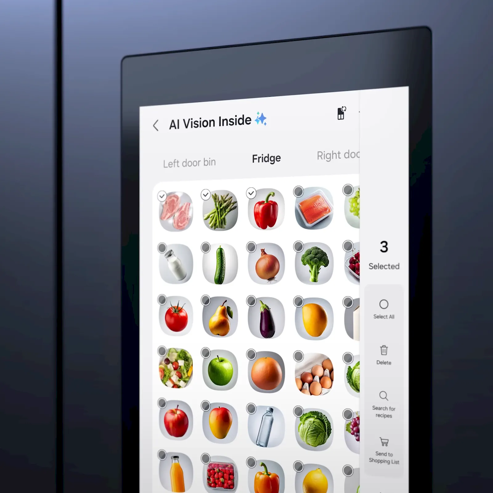 Noul AI recunoaște și mai multe alimente plasate în interiorul său, folosind camerele interne, și îți poate sugera rețete pe baza lor. Samsung adaugă periodic noi alimente și chiar și mâncăruri procesate în algoritmul vizual.