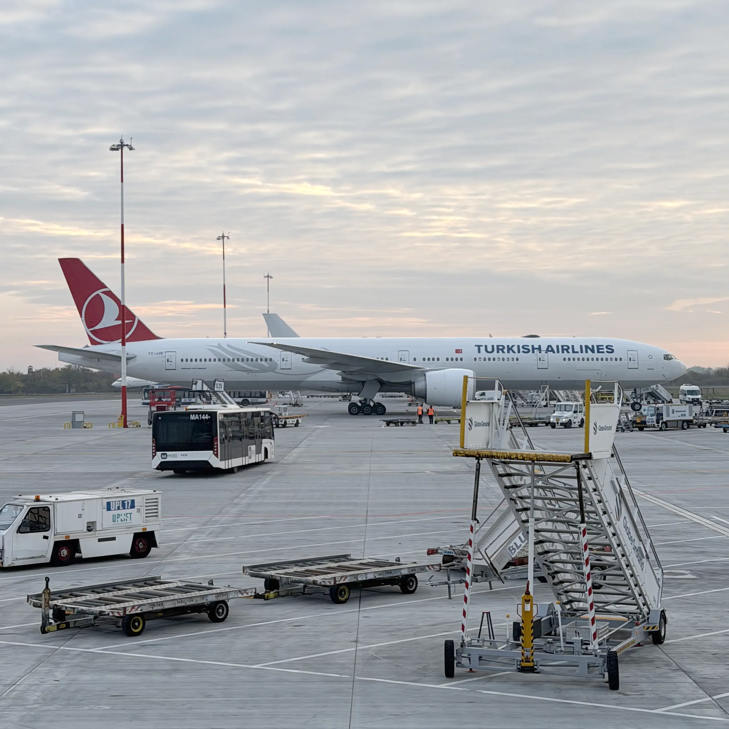 Anul trecut am zburat în Varșovia și, în timp ce mă îmbarcam într-un micuț Embraer E195 al LOT, trece pe lângă noi, pe platforma aeroportului Otopeni, un Boeing 777 de la Turkish. Nu mă așteptam să văd unul la București.